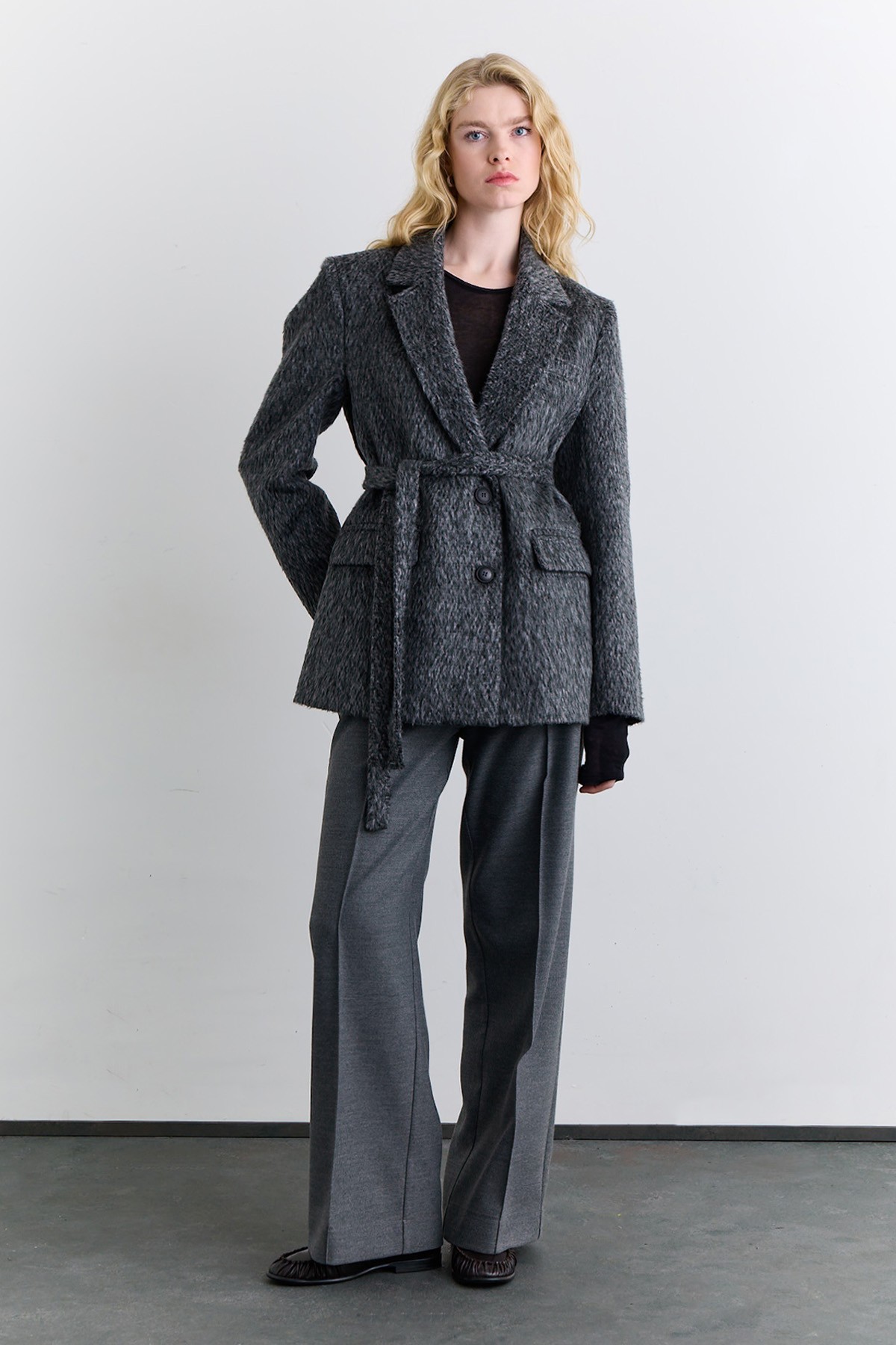 Regular kalıp, kruvaze yaka, uzun kol, cep detaylı, ara boy, düğme kapamalı.