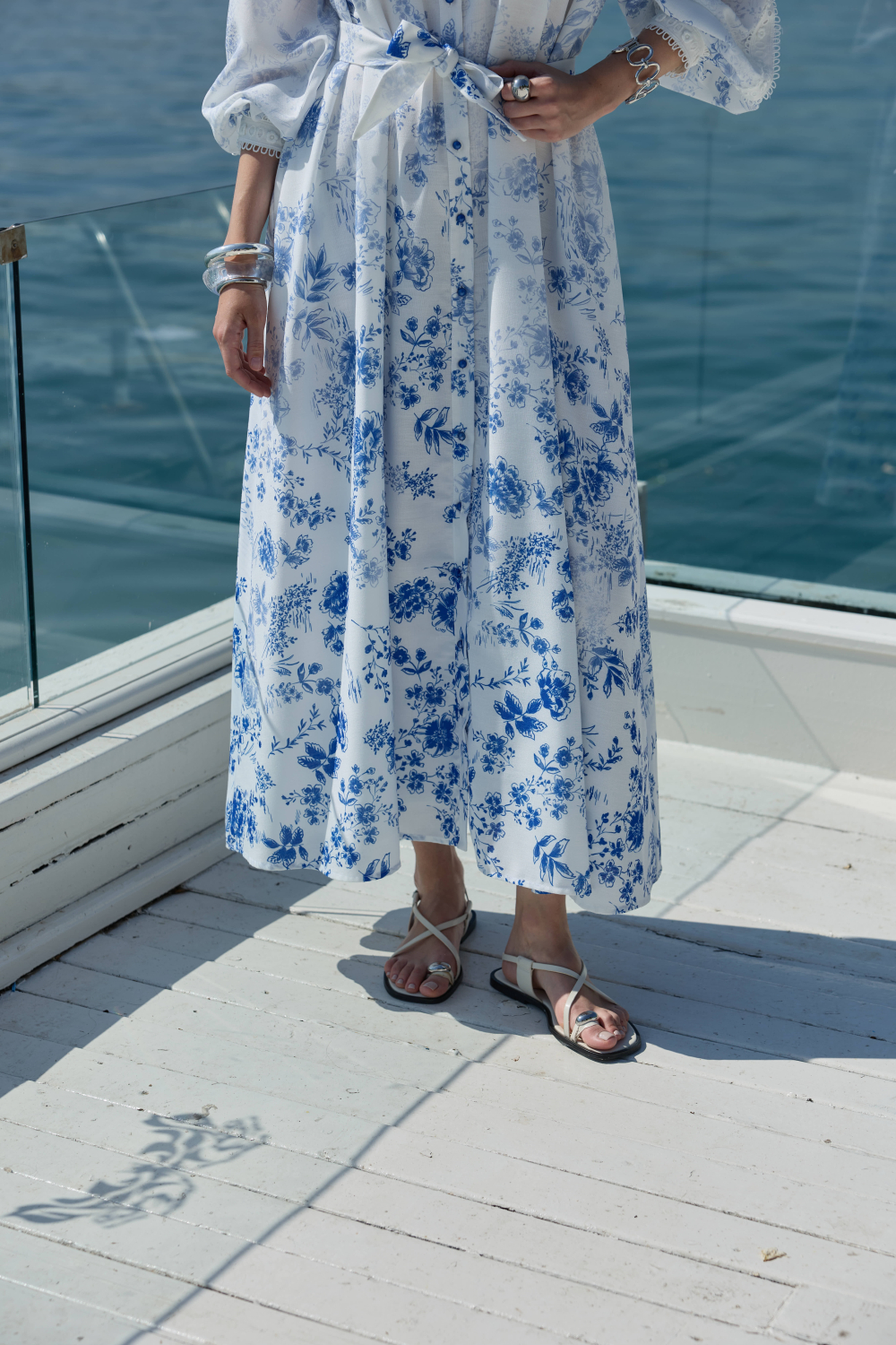 Degrade desenli keten içerikli elbise. Astarlıdır ve iç göstermez kumaştan üretilmiştir. Kendinden kuşaklıdır. Beden seçenekleri: 1 Beden (36-38), 2 Beden (38-40), 3 Beden (42-44). 1 Beden ölçüleri: Göğüs 107 cm, Bel 115 cm, Kol boyu 71 cm, Ürün boyu 139 cm. Mankenin üzerindeki beden 1, manken ölçüleri: Boy 180 cm, Göğüs 86, Basen 94.