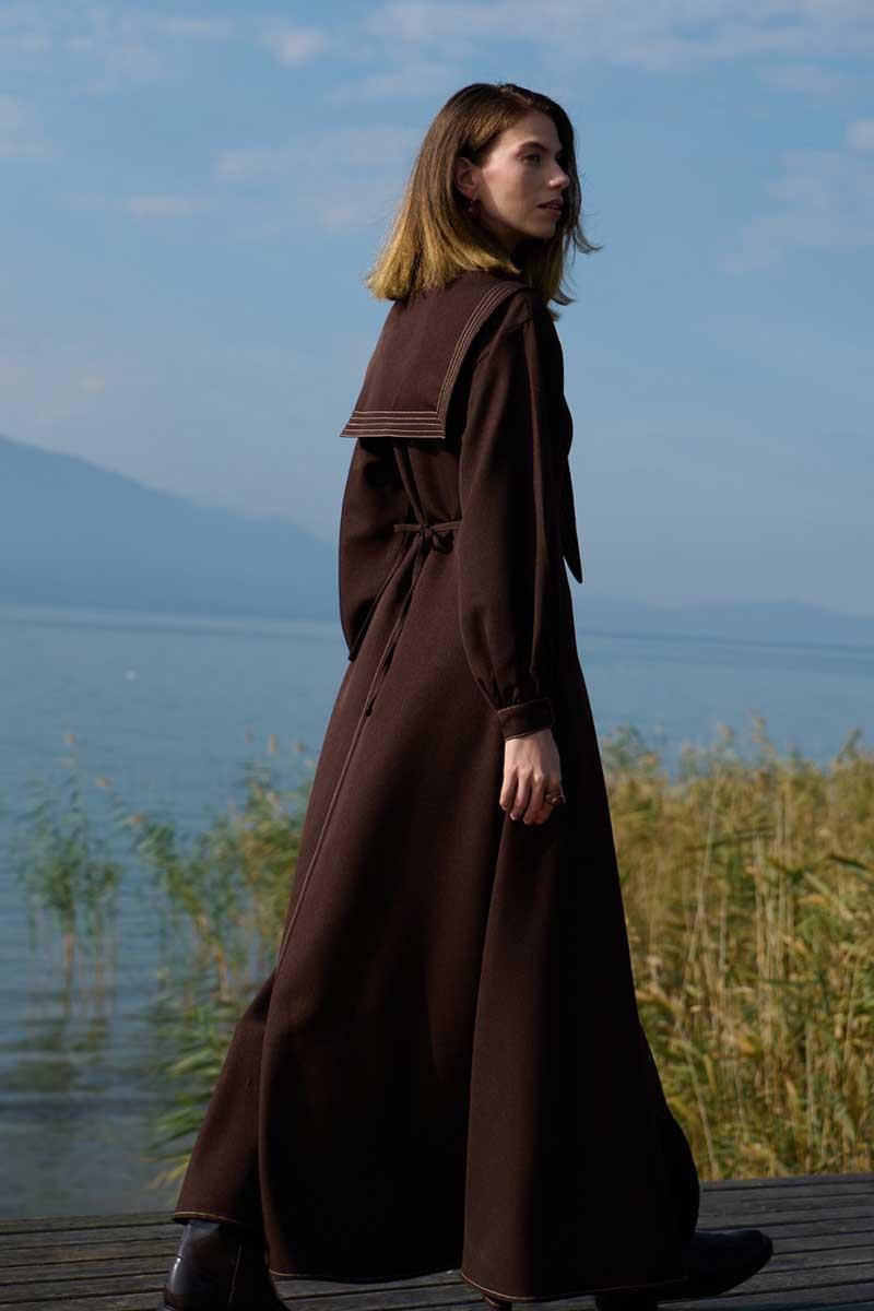 Etiketler: kadın modası, kahve elbise, polyester elbise, slim fit, uzun kol