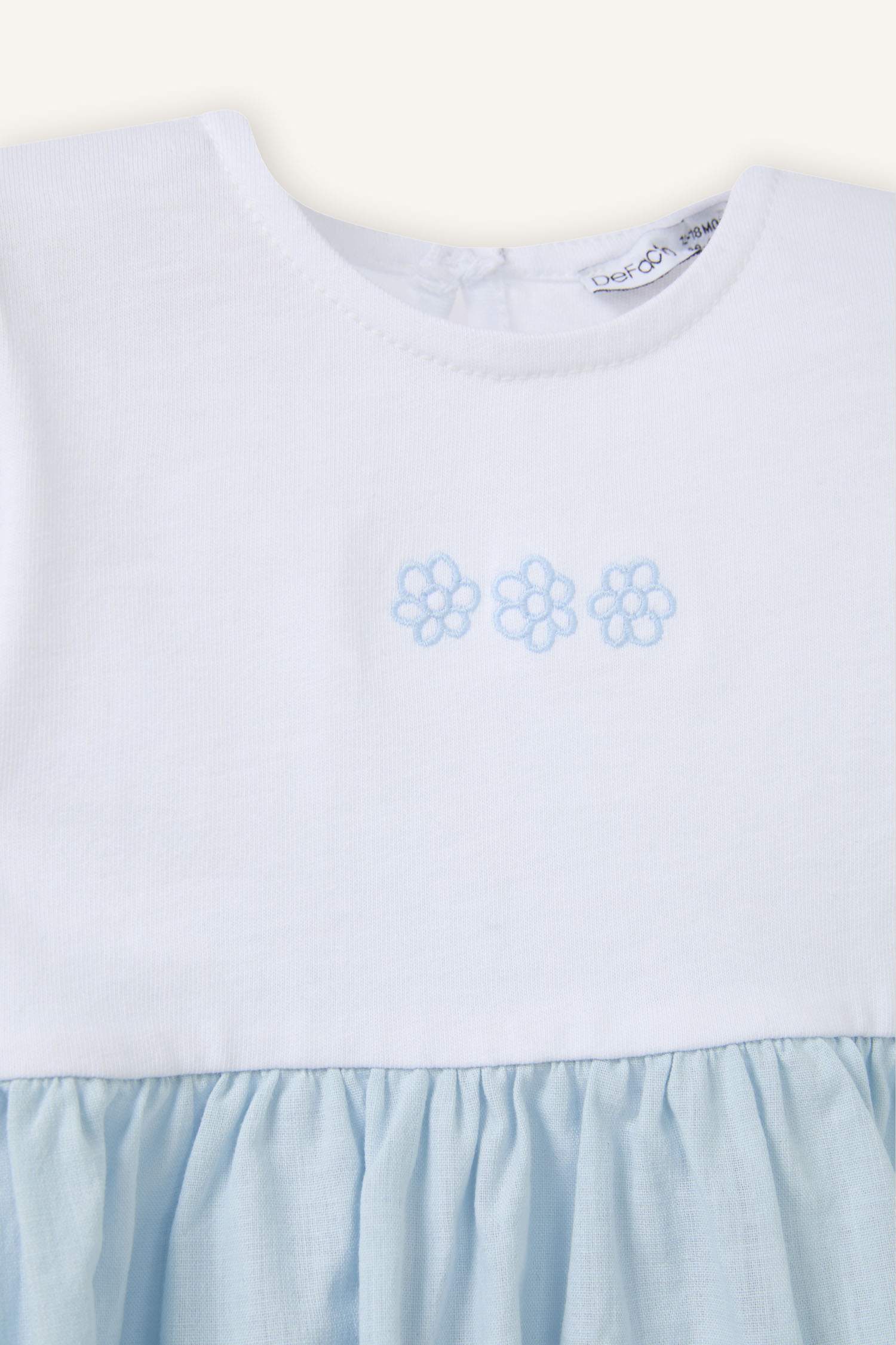Kız bebek desenli elbise, yumuşak ve nefes alabilen kumaşıyla gün boyu rahatlık sağlar. İşleme detayı, enerjik ve şık bir görünüm kazandırır.