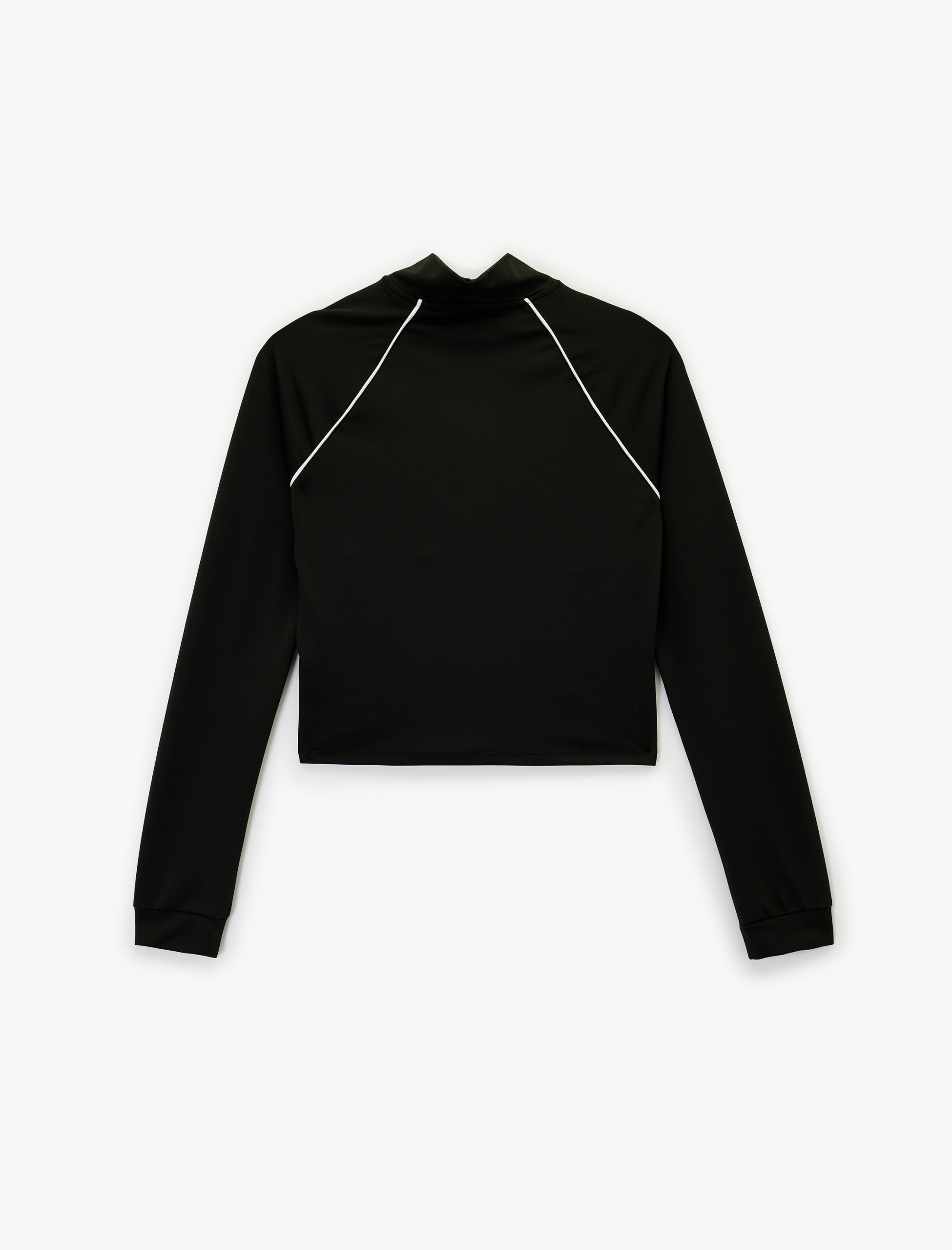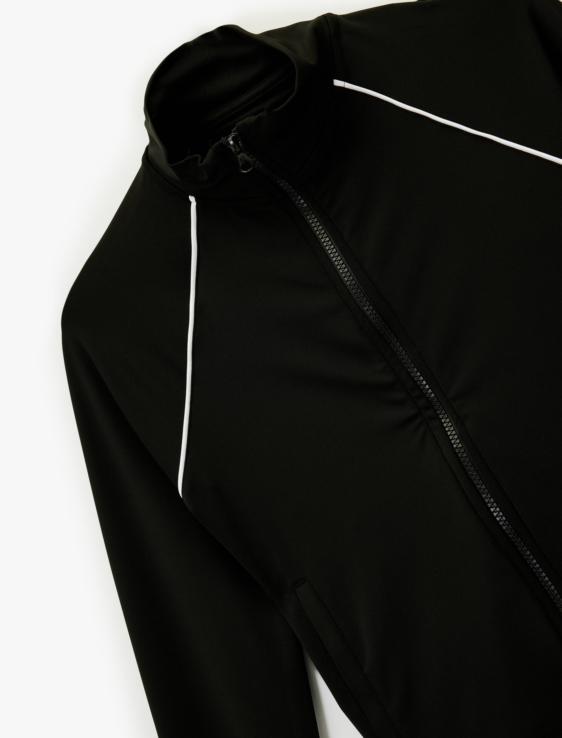 Dik Yaka Uzun Kollu Biyeli Fermuarlı Spor Sweatshirt