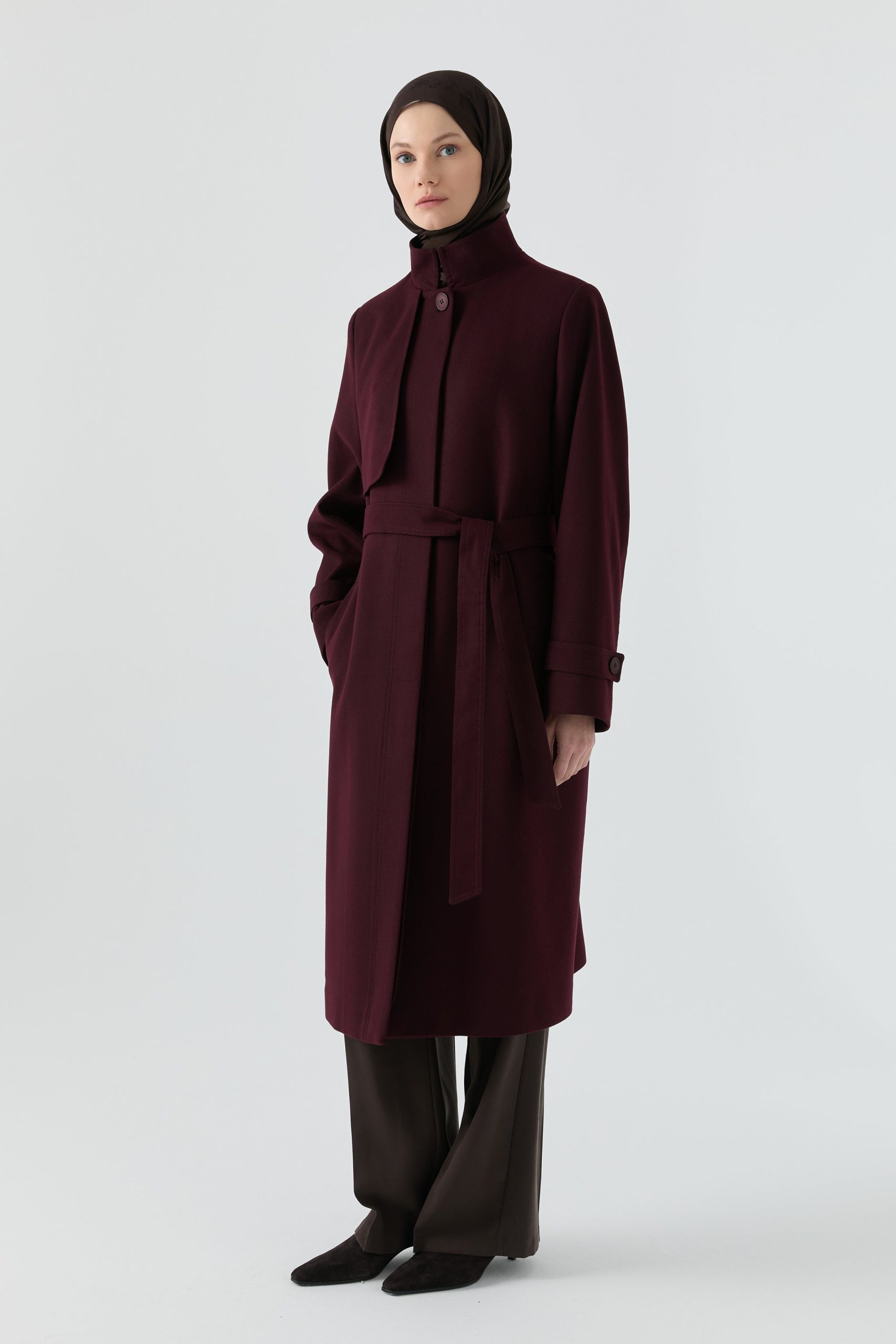 Dik yaka tasarımıyla modern ve güçlü bir duruş sunan bu kaban, sade çizgileri ve zarif formuyla şehir şıklığını sofistike bir seviyeye taşır. Yapısal kesimi silueti kusursuzca şekillendirirken, sıcak tutan dokusu mevsim geçişlerinde konfor sağlar.