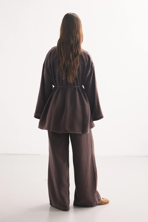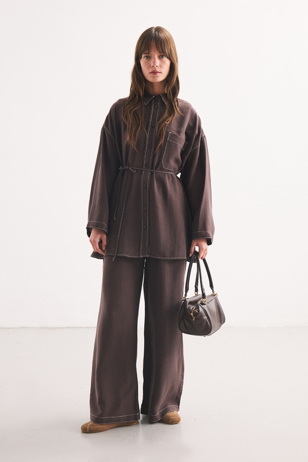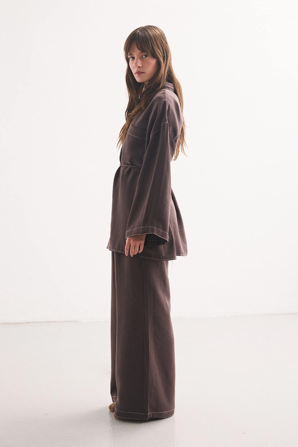 DİKİŞ DETAYLI RAHAT KAHVE PANTOLON TAKIM ÖZELLİKLERİ