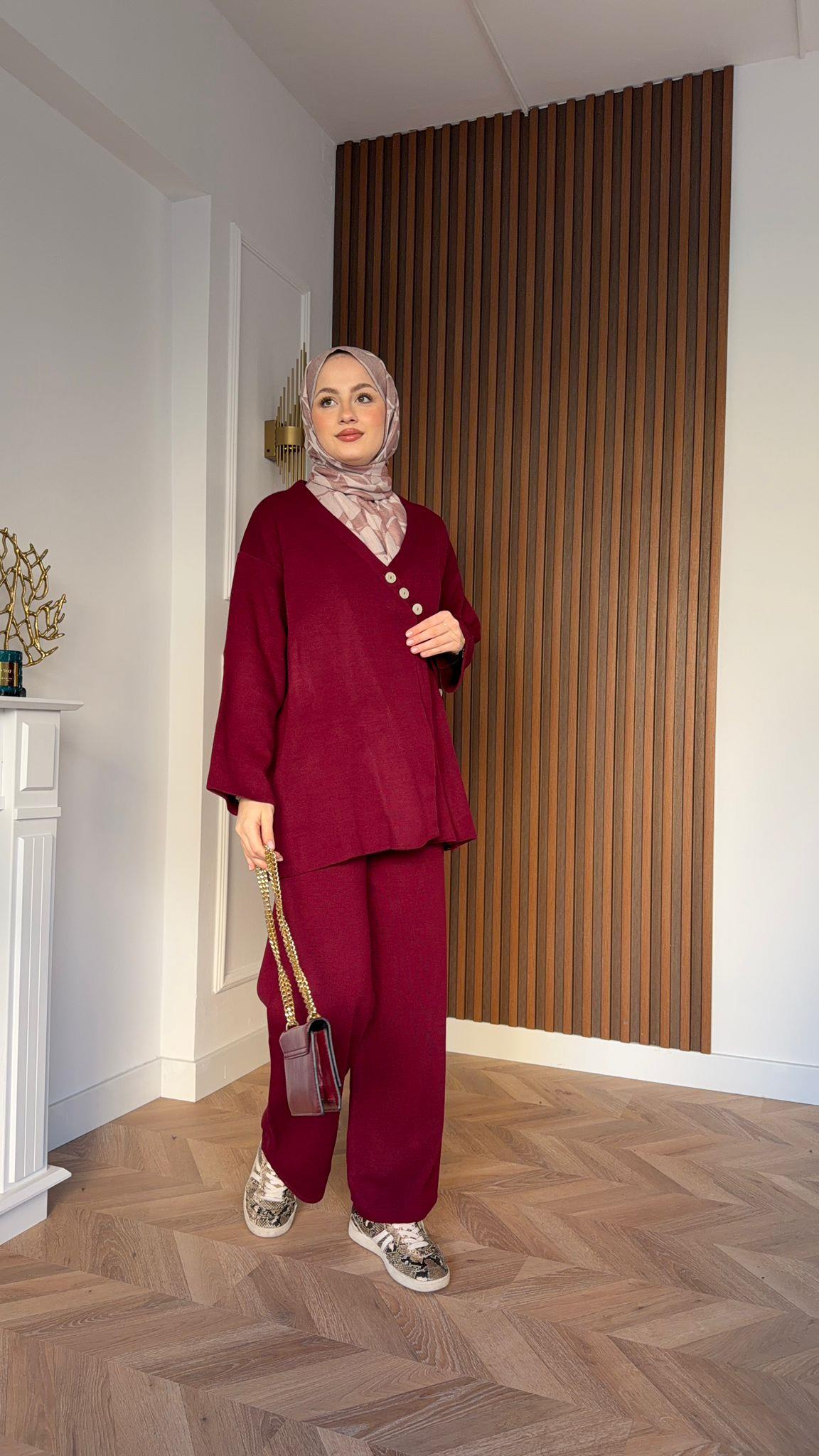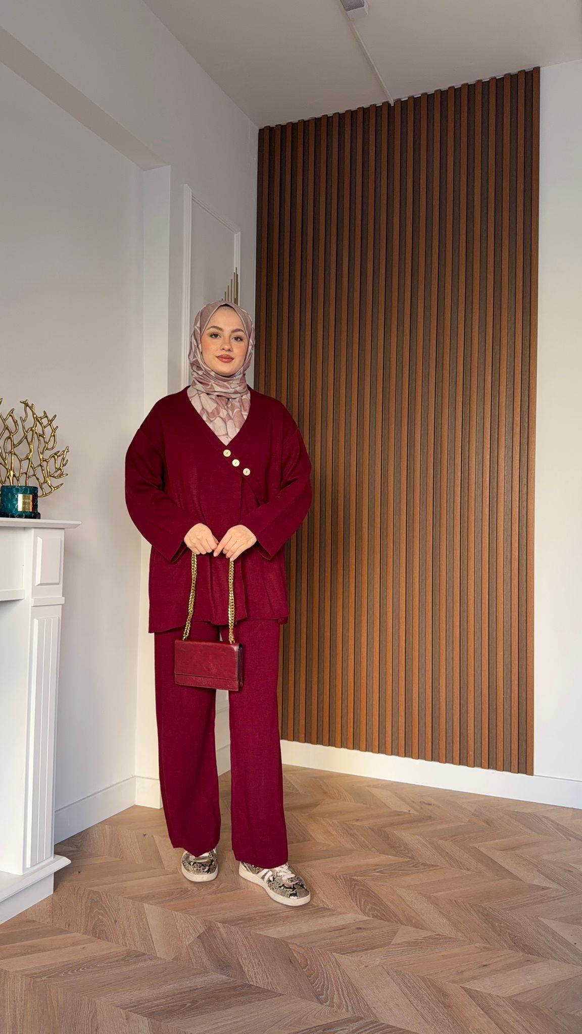 Dört Düğme Triko Takım Bordo
