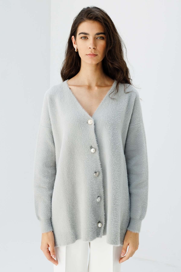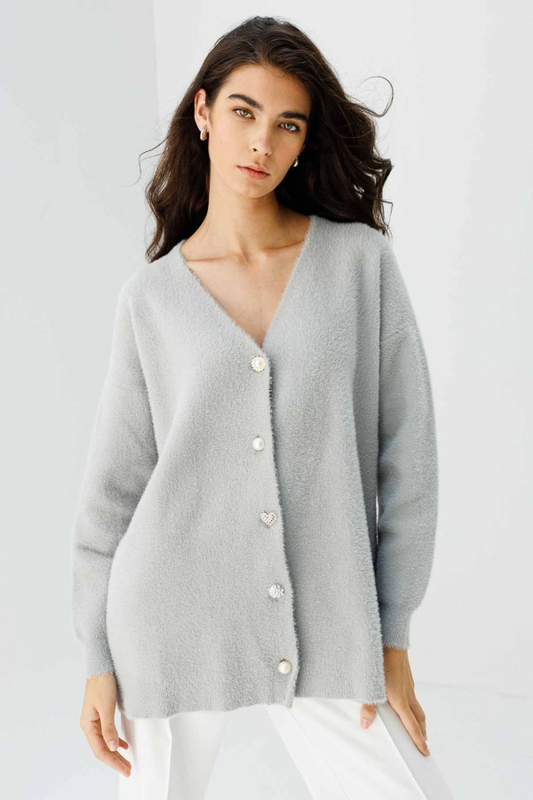 Düğme Detaylı Gri Hırka