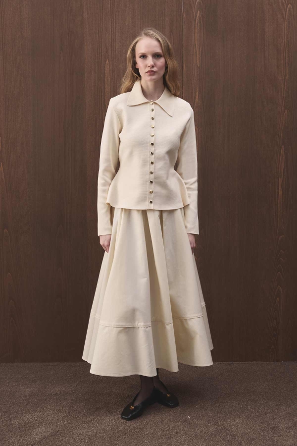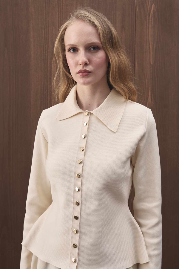DÜĞME DETAYLI MERSERİZE İNCİ HIRKA ÖZELLİKLERİ Gömlek yakalı, önden düğmeli, vatkalı, beli vurgulayan, fit kalıba sahip düğme detaylı merserize hırka.İÇERİĞİ VE YIKANMASI %100 Pes 30 derecede hassas, sentetik ve narin programları soğuk su ile yıkanmalıdır. El ile ölçümlerde 2-3 cm farklılık gösterebilir. Manken Bedeni: SM Manken Ölçüsü: Boy: 1.74 cm, Göğüs: 78 cm, Bel: 58 cm, Basen: 87 cm