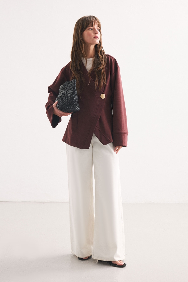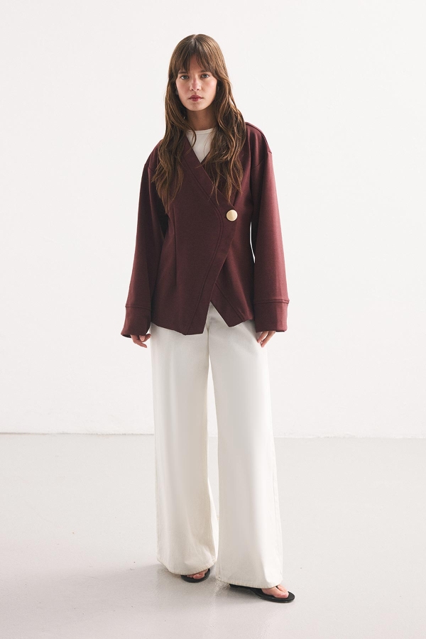 DÜĞME DETAYLI VİŞNE KİMONO BLUZ ÖZELLİKLERİ