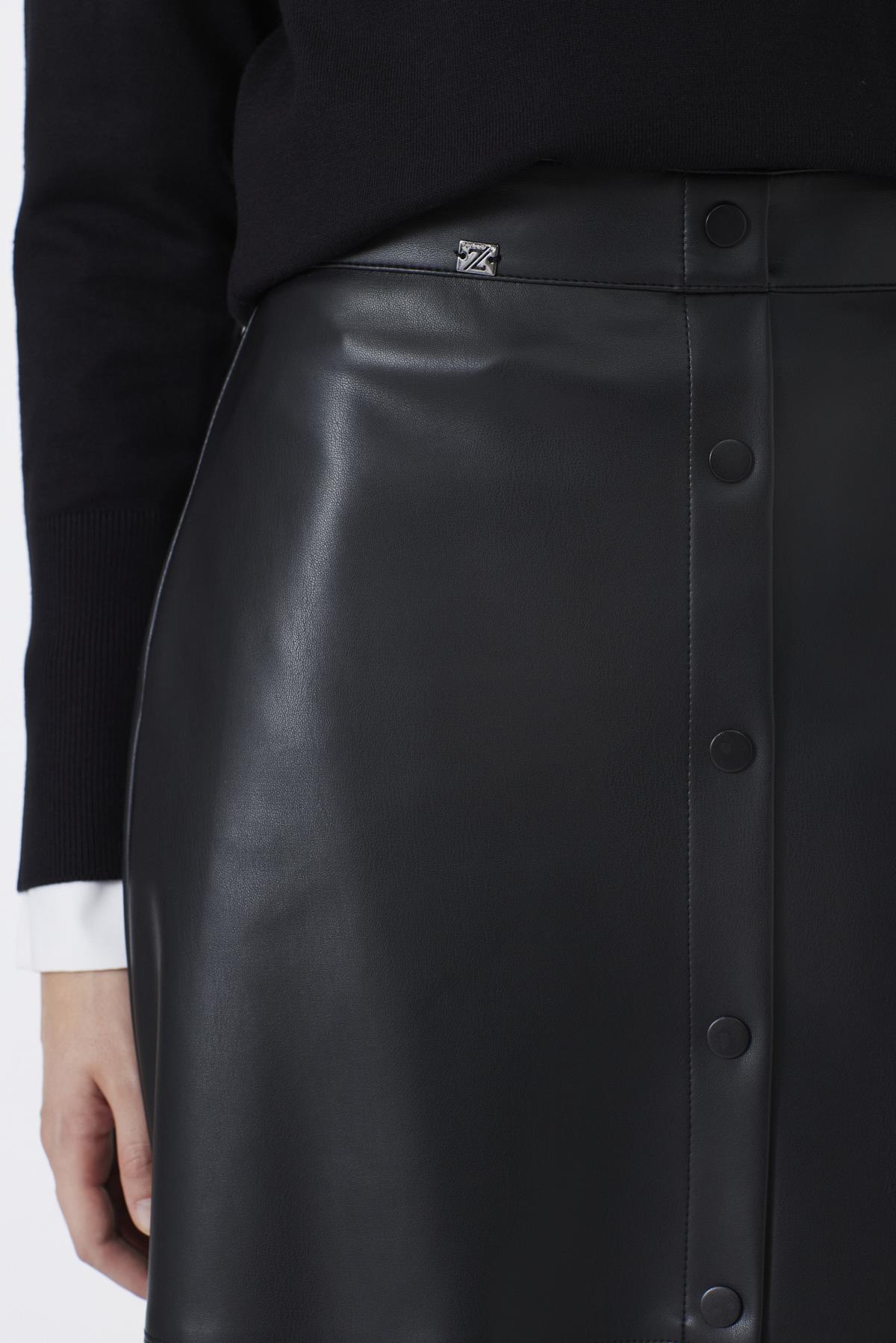 Düğme Görünümlü Siyah Deri Etek ETK-0194