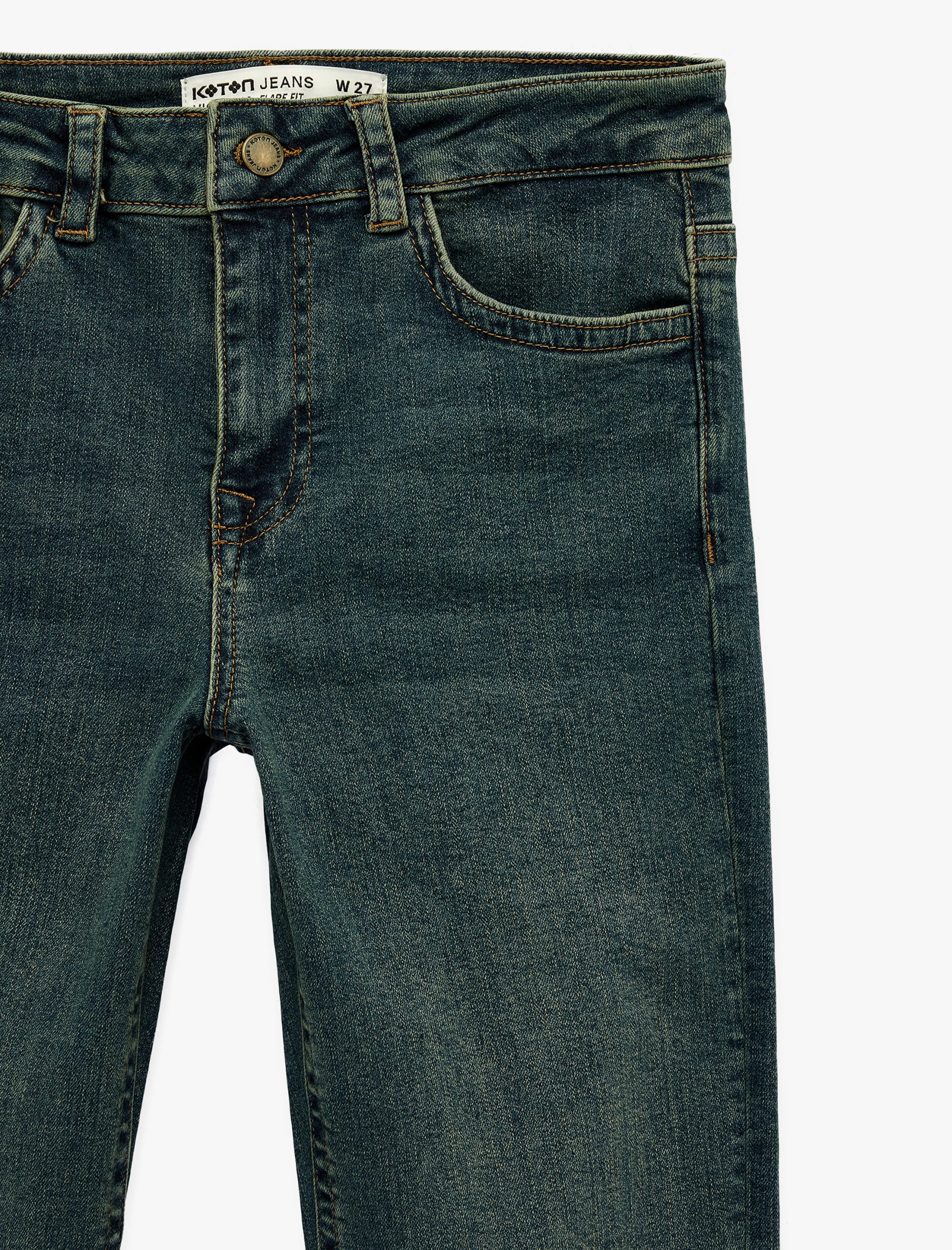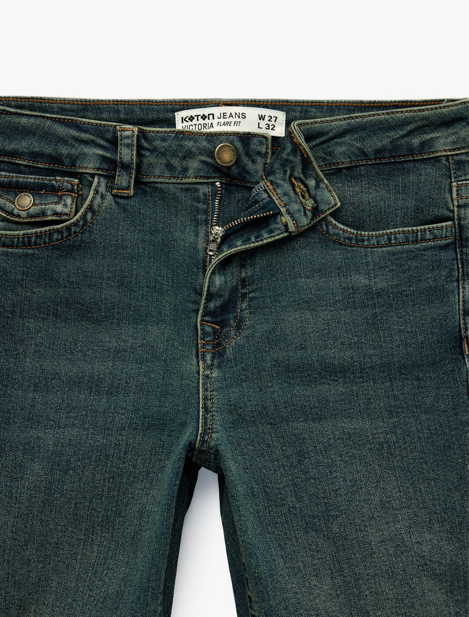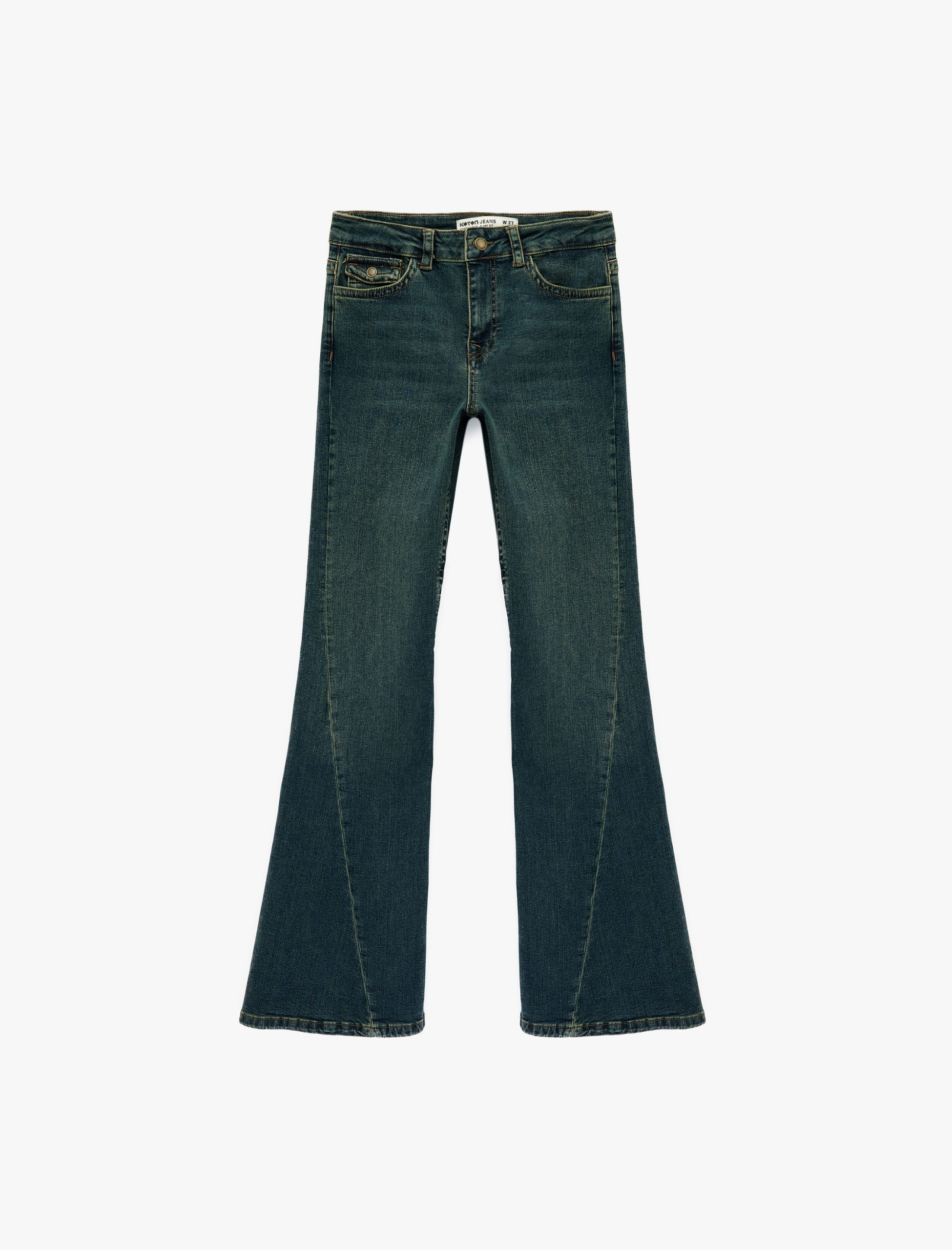 Düğmeli Cepli Slim Fit Düşük Bel İspanyol Paça Jean Pantolon – Flare Jeans