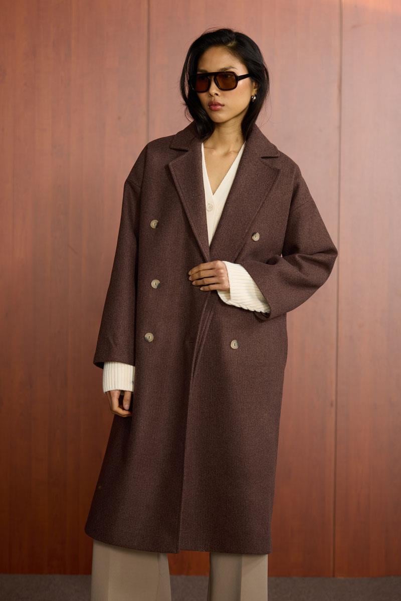 Düğmeli Kruvaze Kaban Acı kahve