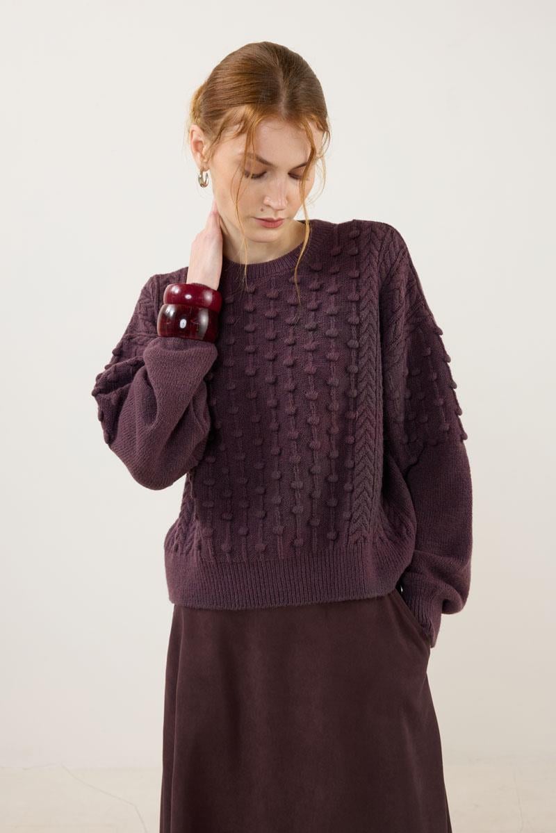 Düğüm Detaylı Kazak Mürdüm