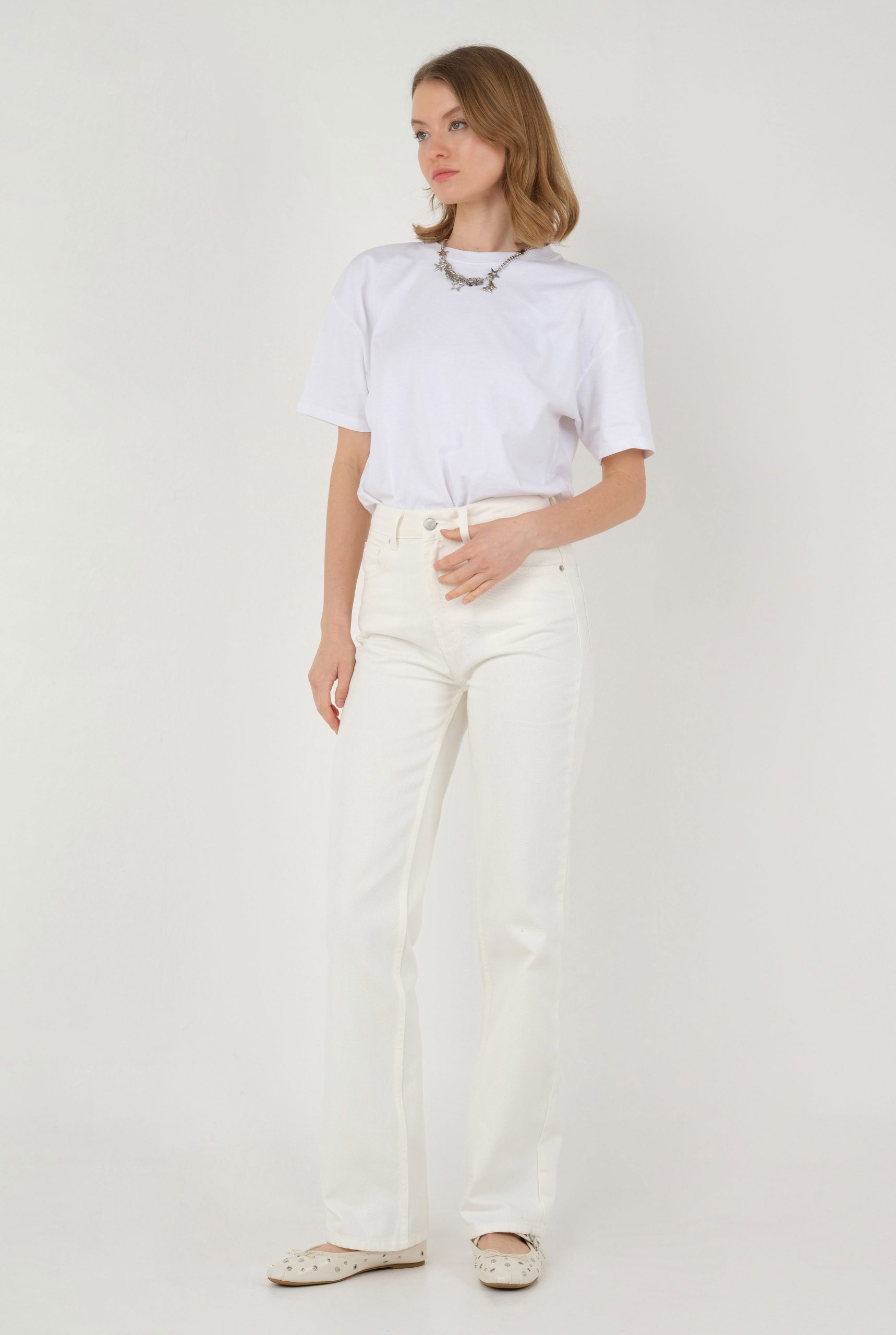 Düz Kesim Ecru Jean