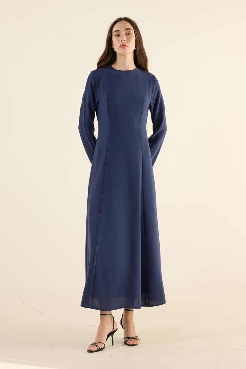 Düz Kuplu Gece Elbisesi Lacivert