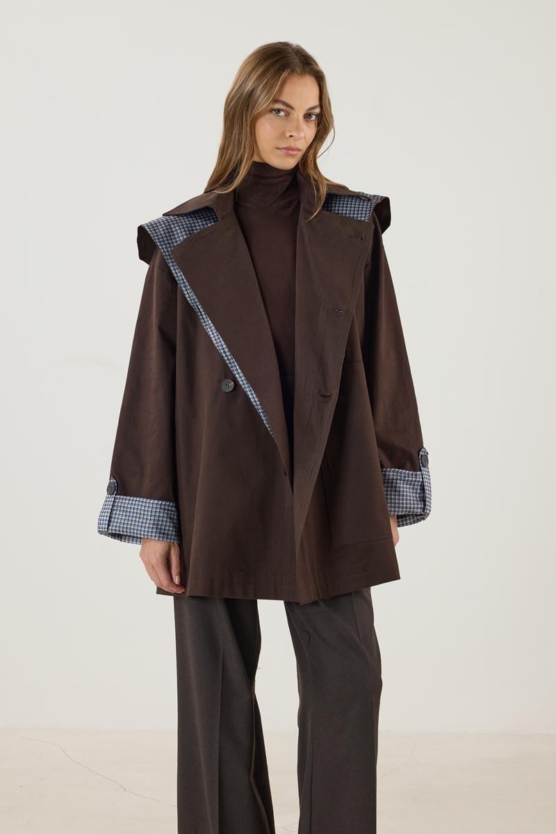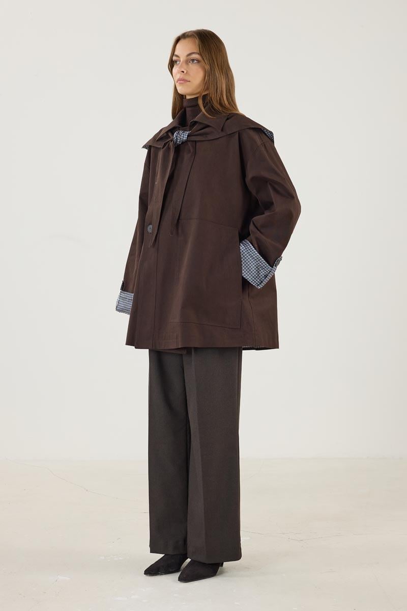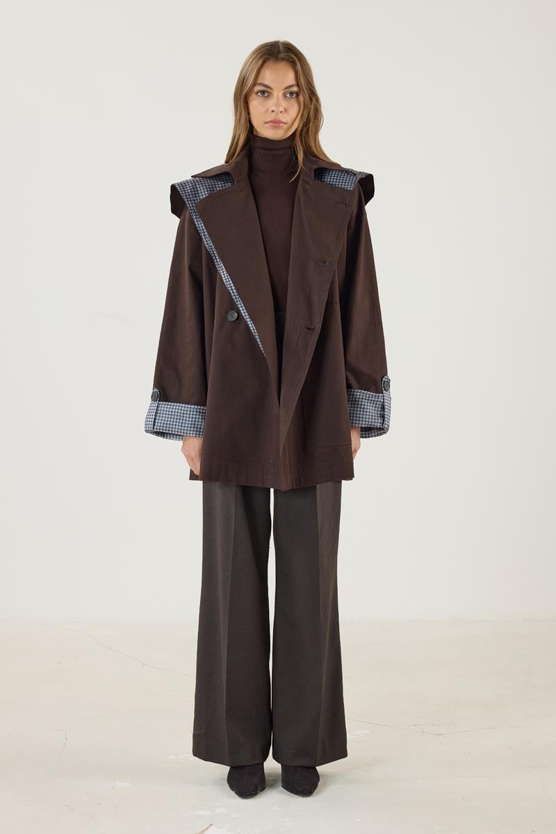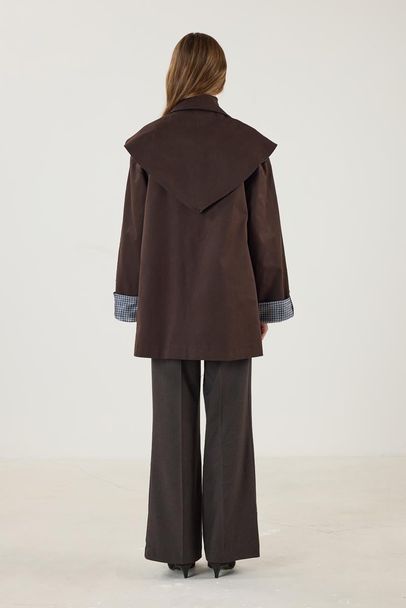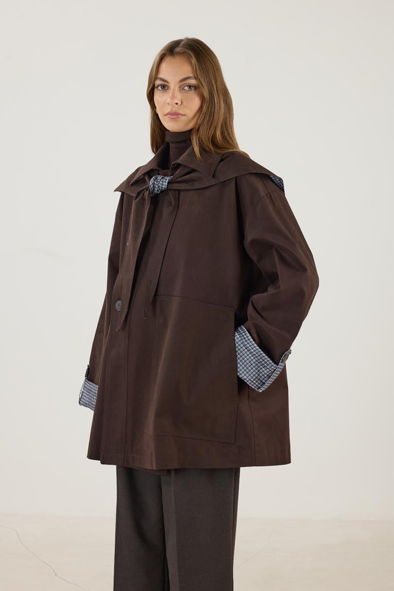 Ekose Astarlı Trençkot Acı kahve