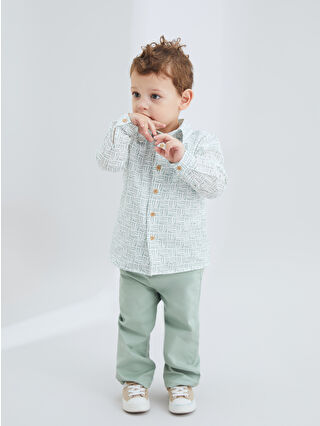 Ekru Baskılı Erkek Bebek Gömlek ve Pantolon 2’li