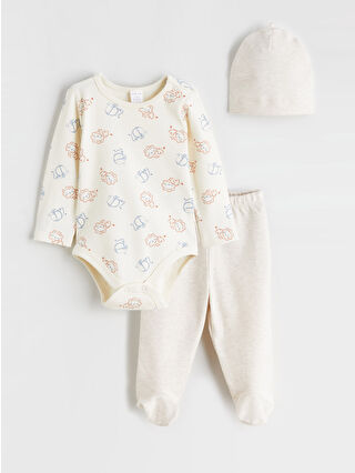 Ekru Baskılı Erkek Bebek Hastane Çıkış Seti