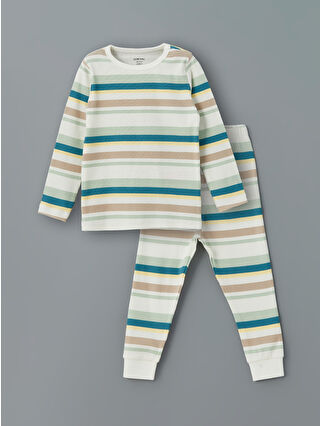 Ekru Bisiklet Yaka Çizgili Erkek Bebek Pijama Takımı