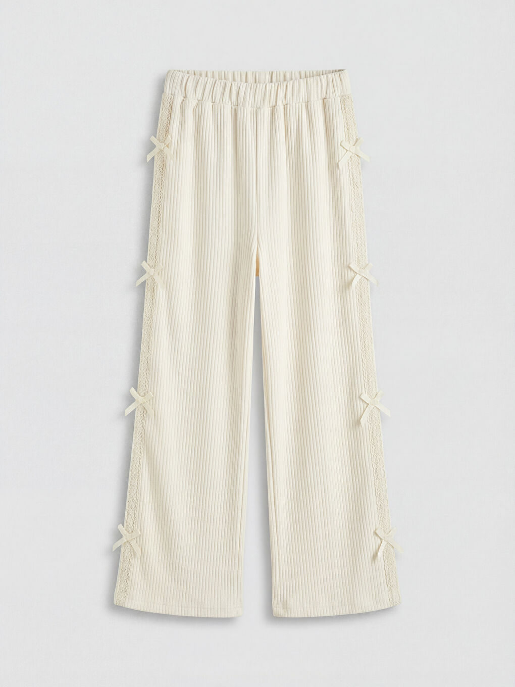 Ekru Dantel ve Fiyonk Detaylı Kız Çocuk Pantolon