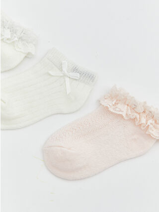 Ekru Desenli Kız Bebek Patik Çorap 3’lü