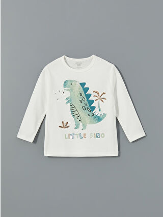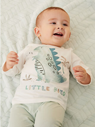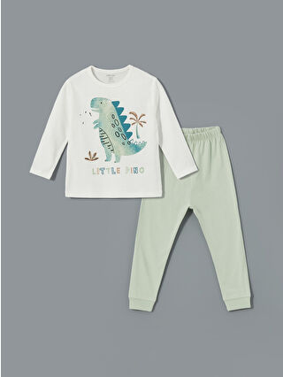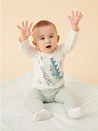 Ekru Dinozor Baskılı Erkek Bebek Pijama Takım