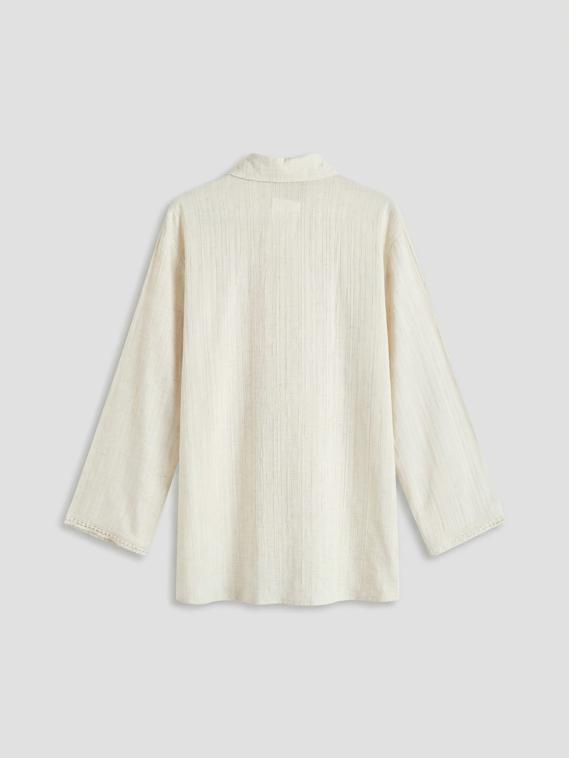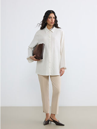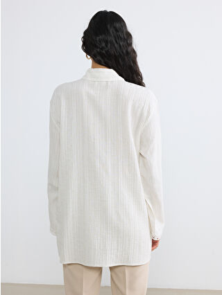 Ekru Dokulu Keten Karışımlı Kadın Gömlek Tunik