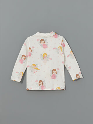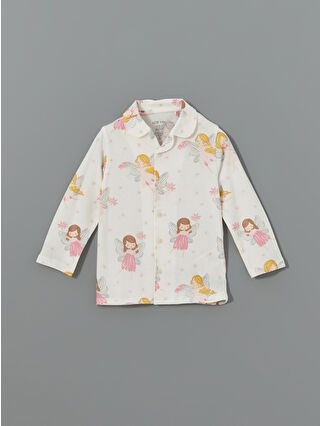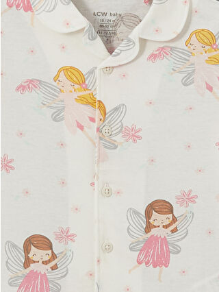 Ekru Gömlek Yaka Baskılı Kız Bebek Pijama Takım