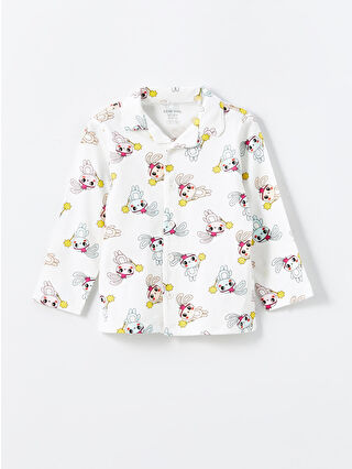 Ekru Gömlek Yaka Baskılı Kız Bebek Pijama Takım
