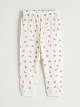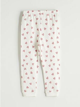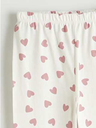 Ekru Kalp Baskılı Kız Bebek Çıtçıtlı Body ve Tayt