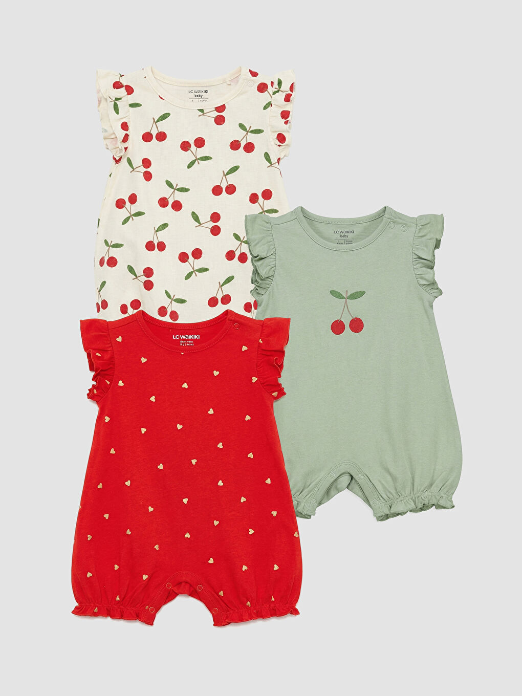 Etiketler: 3-pack romper, baby clothing, baby girl romper, cotton romper, ecru romper, jersey romper, LCW baby, newborn clothing, ruffle romper