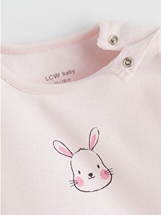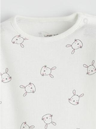 Ekru Tavşan Baskılı Kız Bebek Çıtçıtlı Body 3’lü