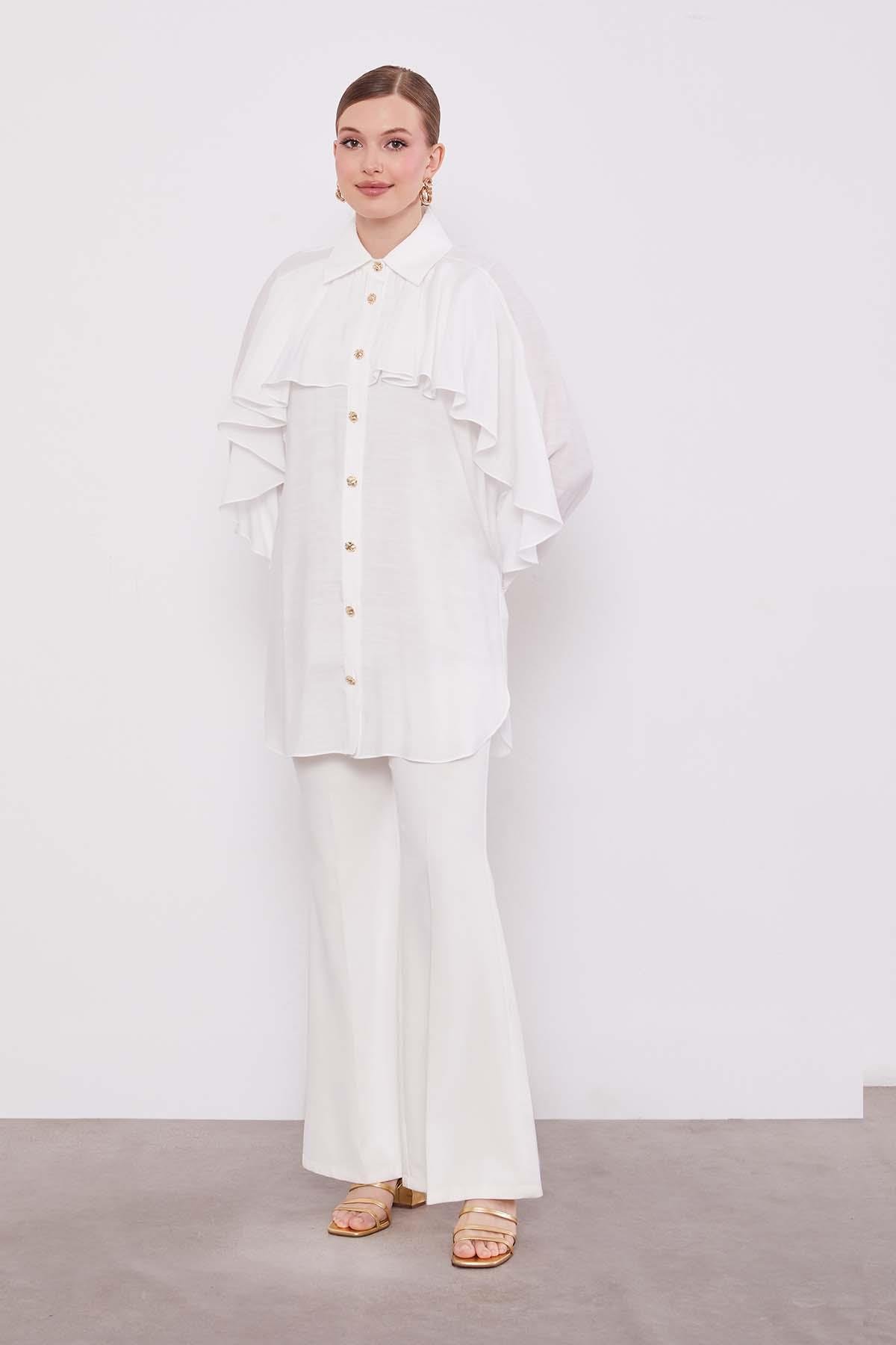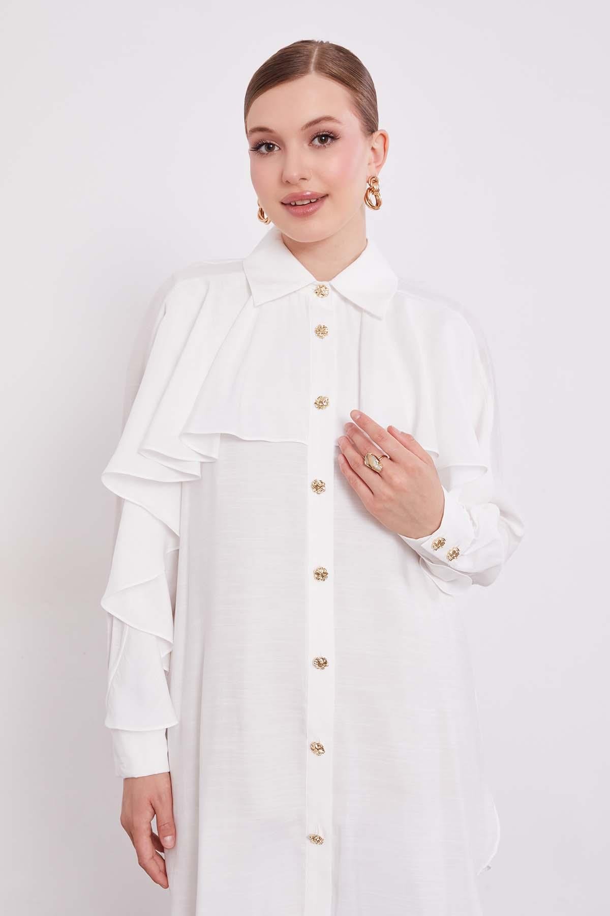 Ekru Volan Detay Düğmeli Gömlek