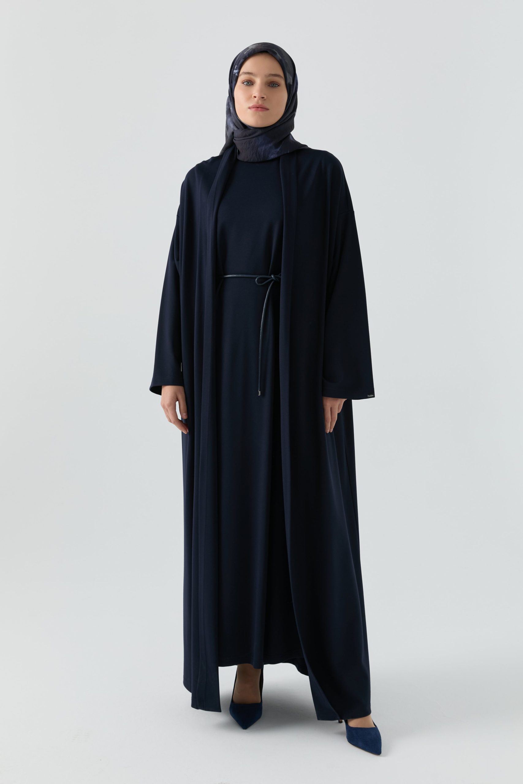Uyumlu elbise ve dış parçadan oluşan bu ikili takım, sade çizgileriyle şıklığı en pratik hâliyle sunar. Akıcı formu ve rahat kalıbı hem günlük kullanımda hem de özel buluşmalarda konfor sağlarken, takımın bütünlüklü silueti modern bir zarafet oluşturur.