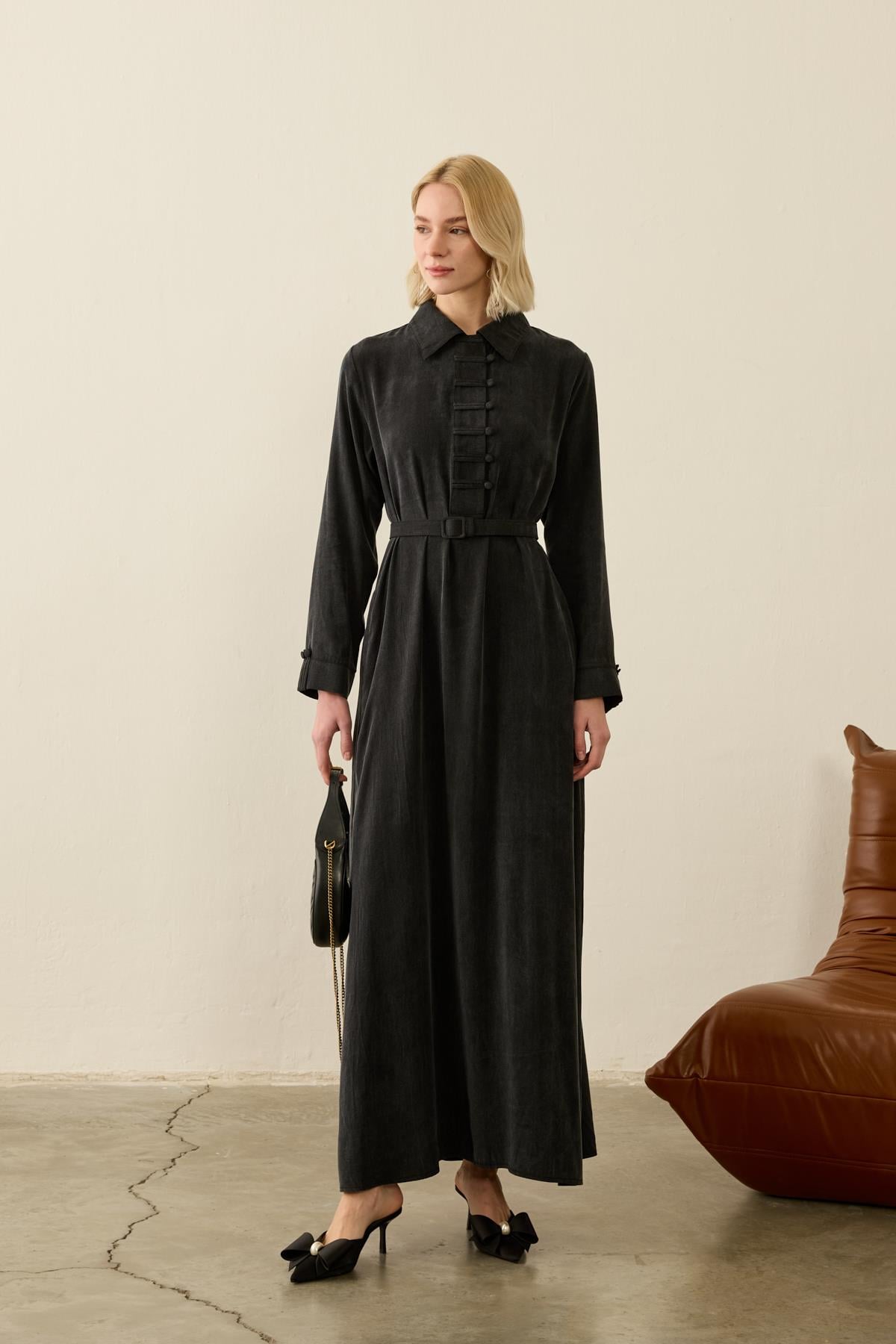 Emosh Britli Düğmeli Kemerli Elbise LACİVERT