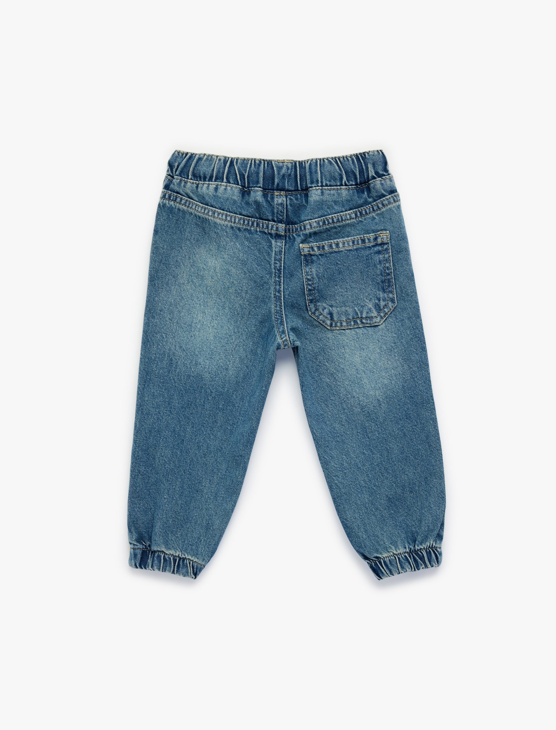 Erkek Bebek Pamuklu Beli Bağcıklı Lastikli Cepli Jogger Denim Pantolon