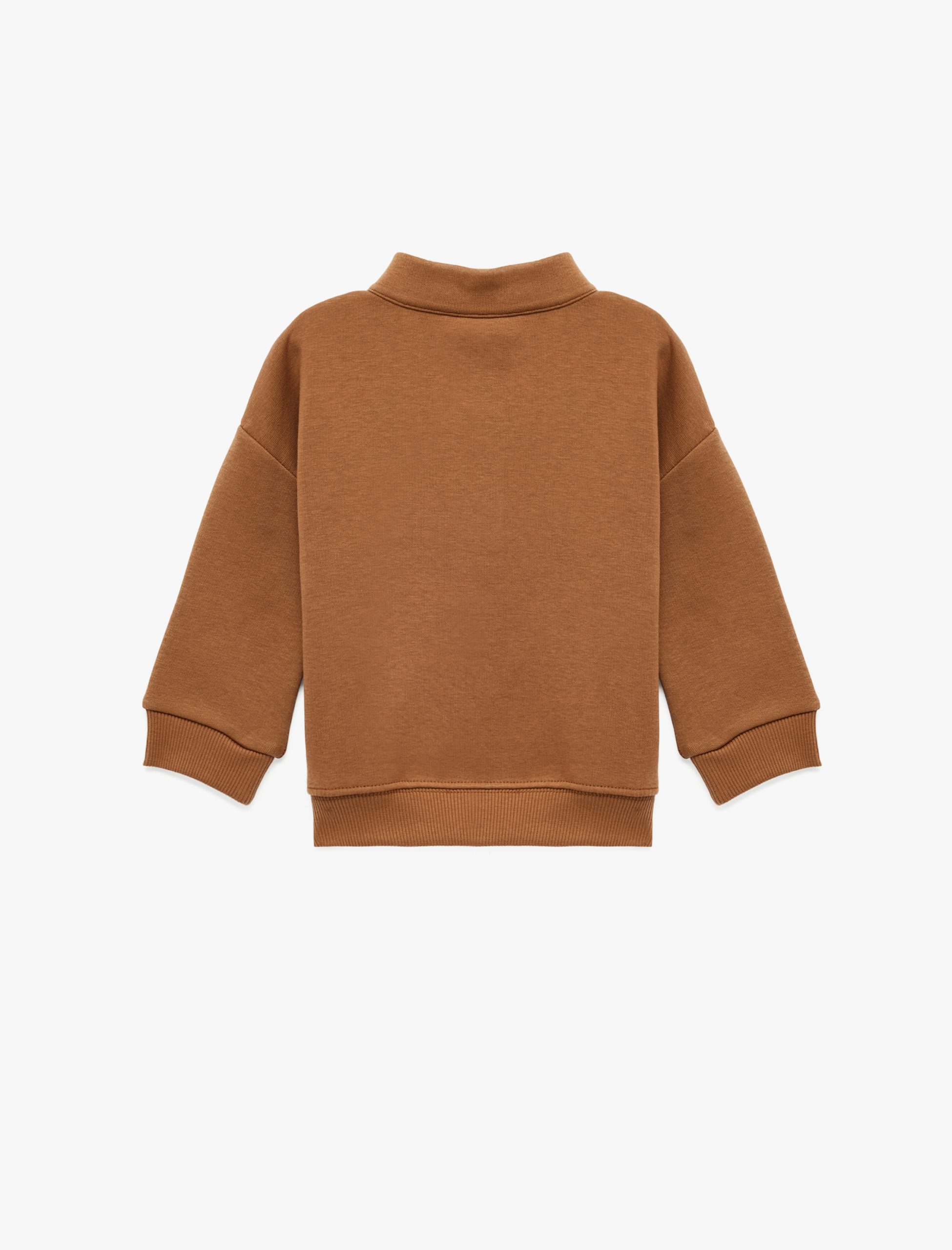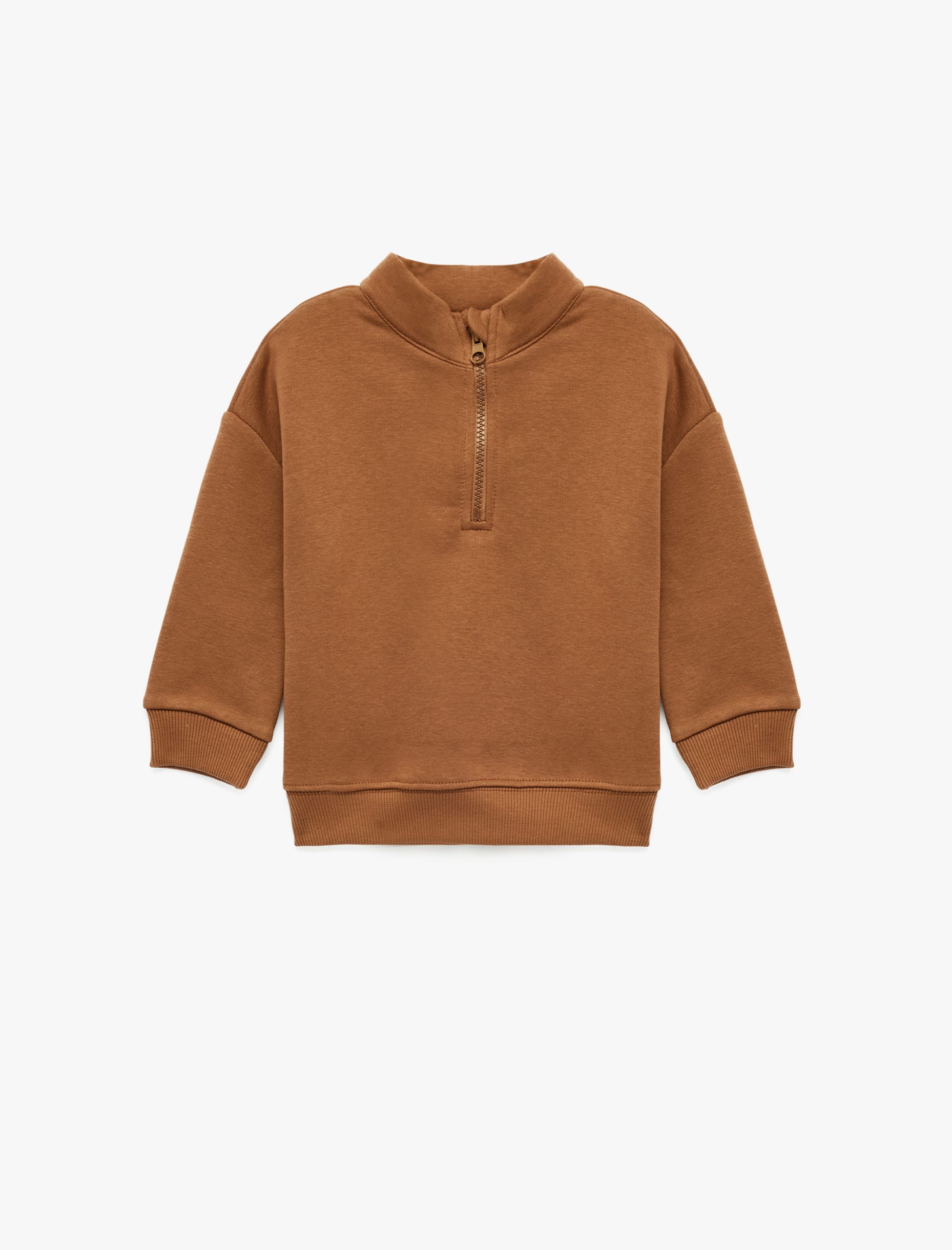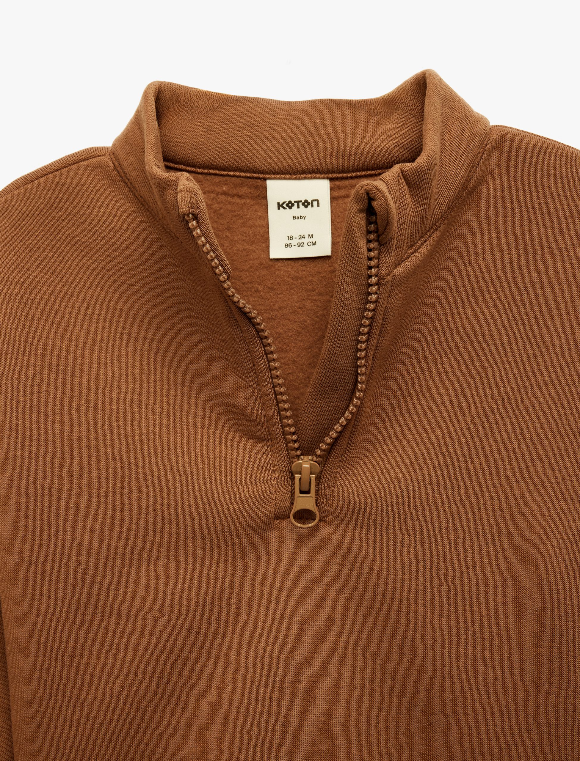 Erkek Bebek Pamuklu Uzun Kollu Yarım Fermuarlı Dik Yaka Sweatshirt