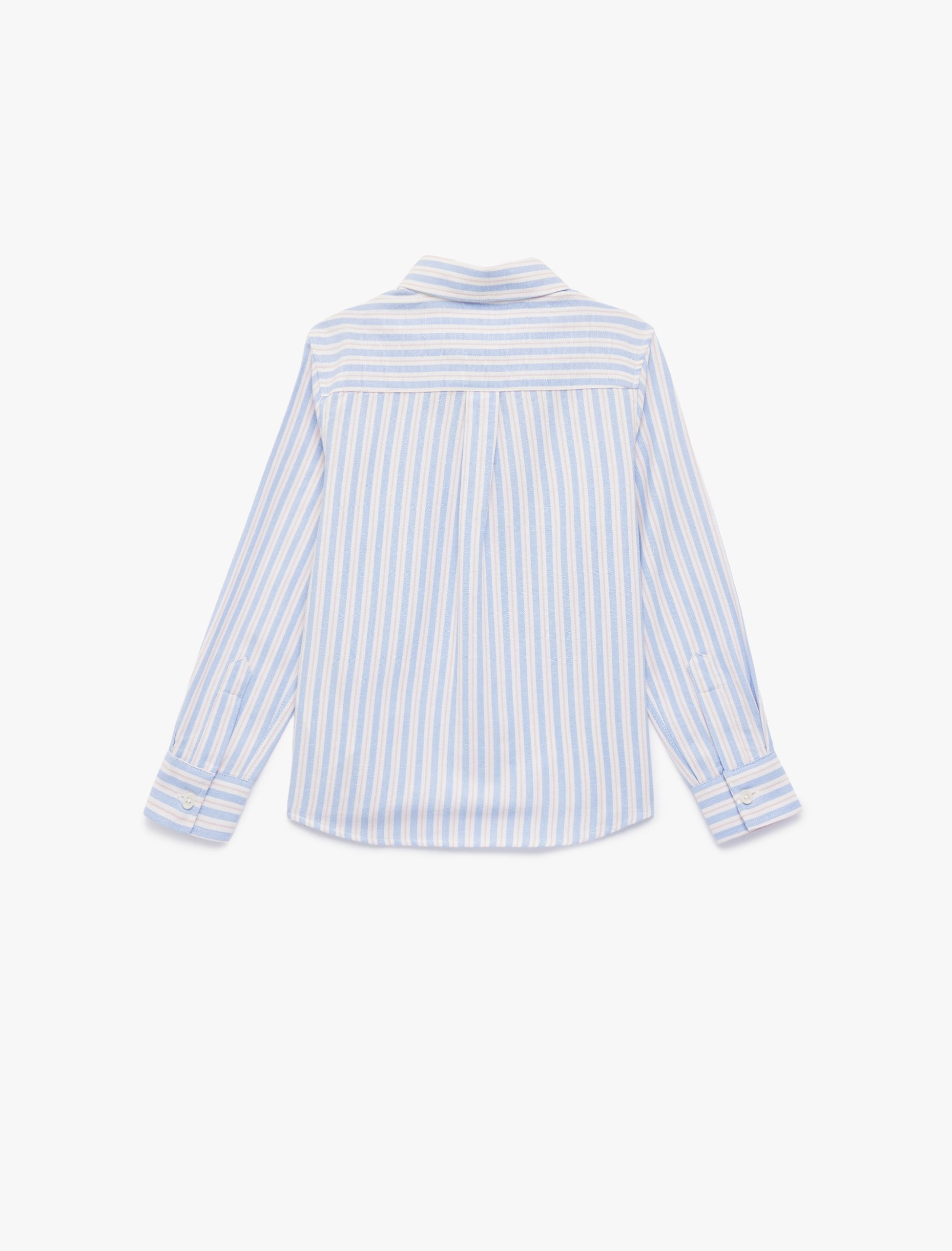 Erkek Çocuk Pamuklu Uzun Kollu Gömlek Yaka Çizgili Gömlek