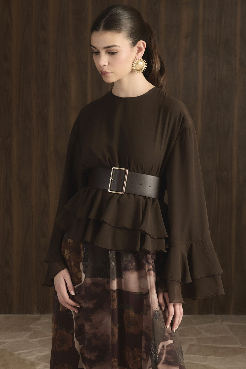 Etek Desenli Şifon Takım – Kahve