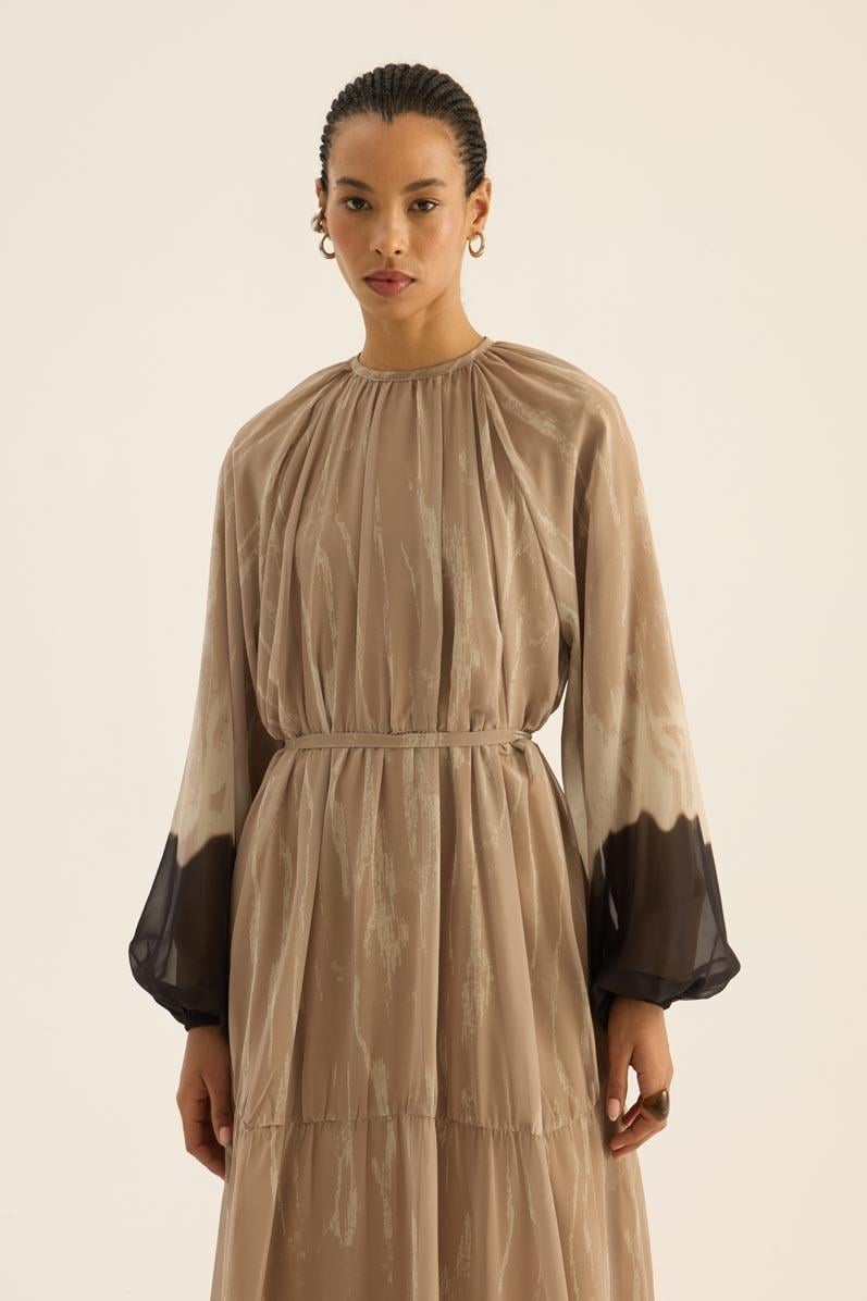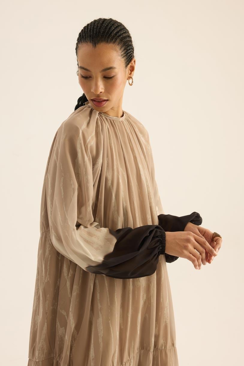 Vücut hatlarını zarifçe takip eden kuplu yapısıyla bu elbise, düzenli ve toparlayıcı bir siluet sunar. Kumaşın tok duruşu modele temiz bir form kazandırırken, kup dikişleri elbiseye hem hareket hem de ince bir detay ekler.