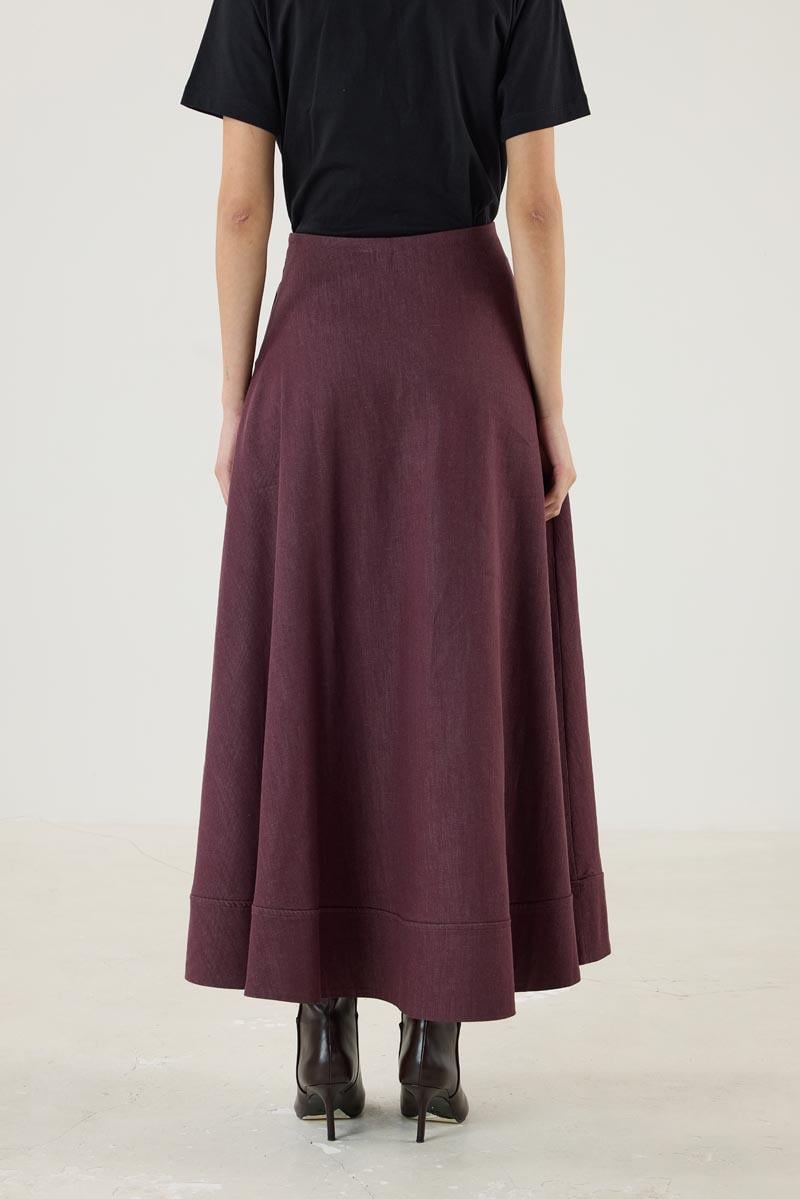 Etek Ucu Parçalı Kloş Kesim Kot Etek Bordo