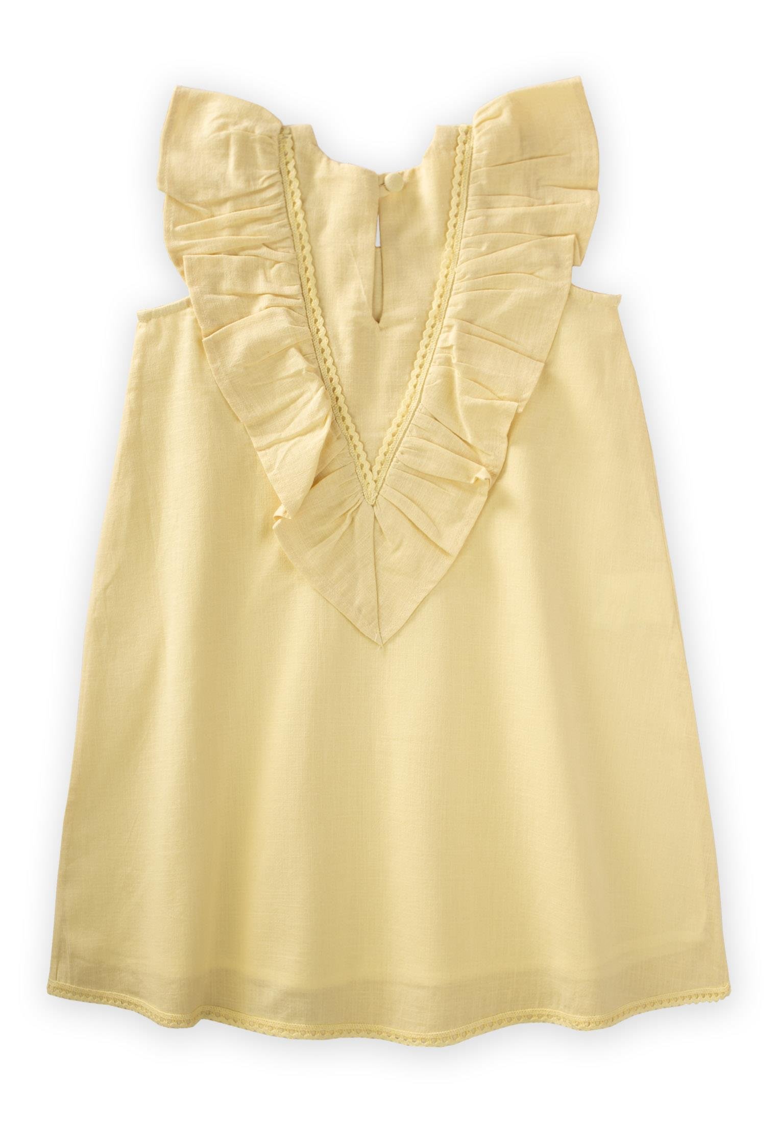 Etek Ucu Ve Arkası Dantelli Elbise 2-7 Yaş Sarı