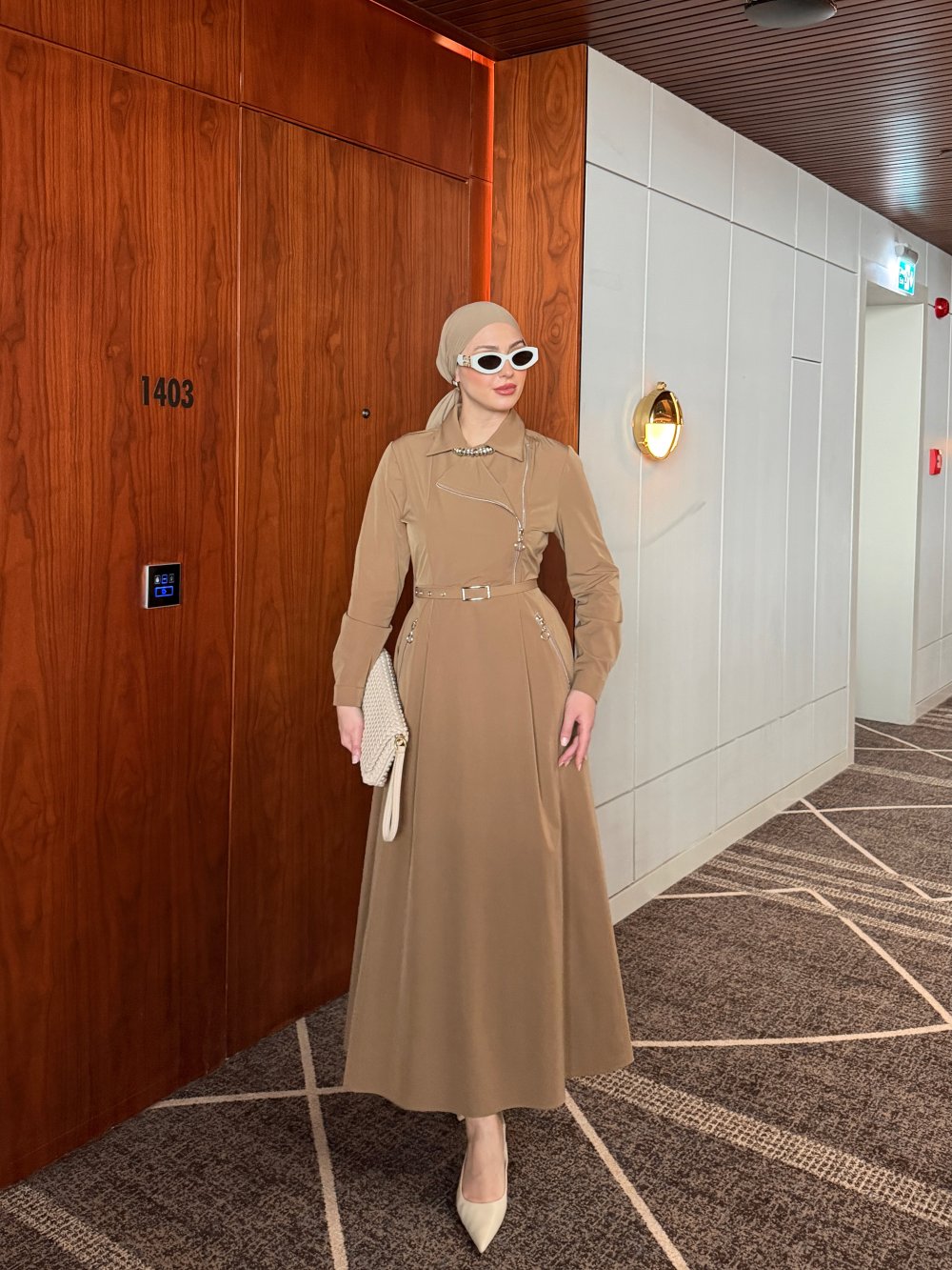 Elbise yan tarafında fermuarlı tasarıma sahiptir.