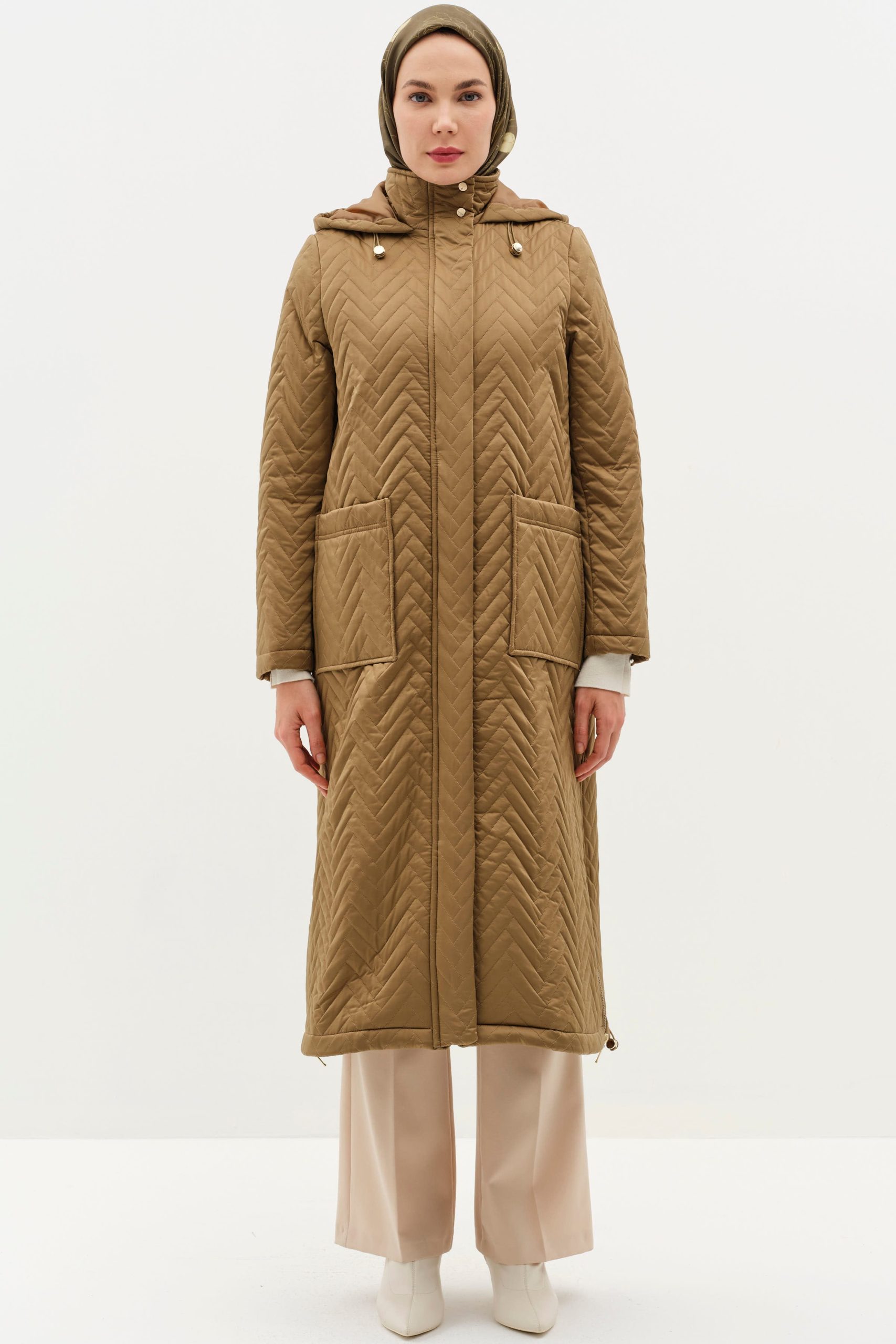 Fermuar Yırtmaçlı Kapitone Kaban – Olive