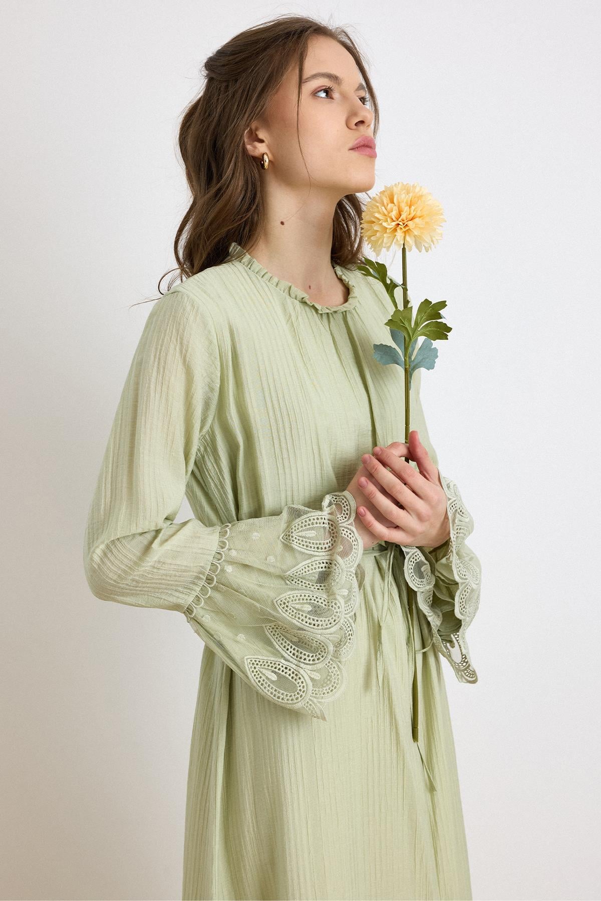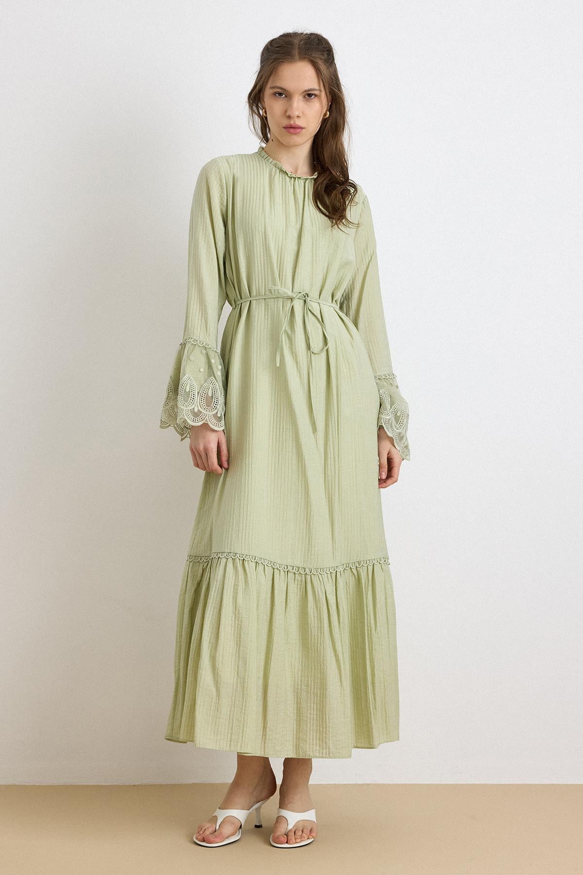 Fisto Detaylı Kolları Güpürlü Elbise ÇAĞLA 9429-E