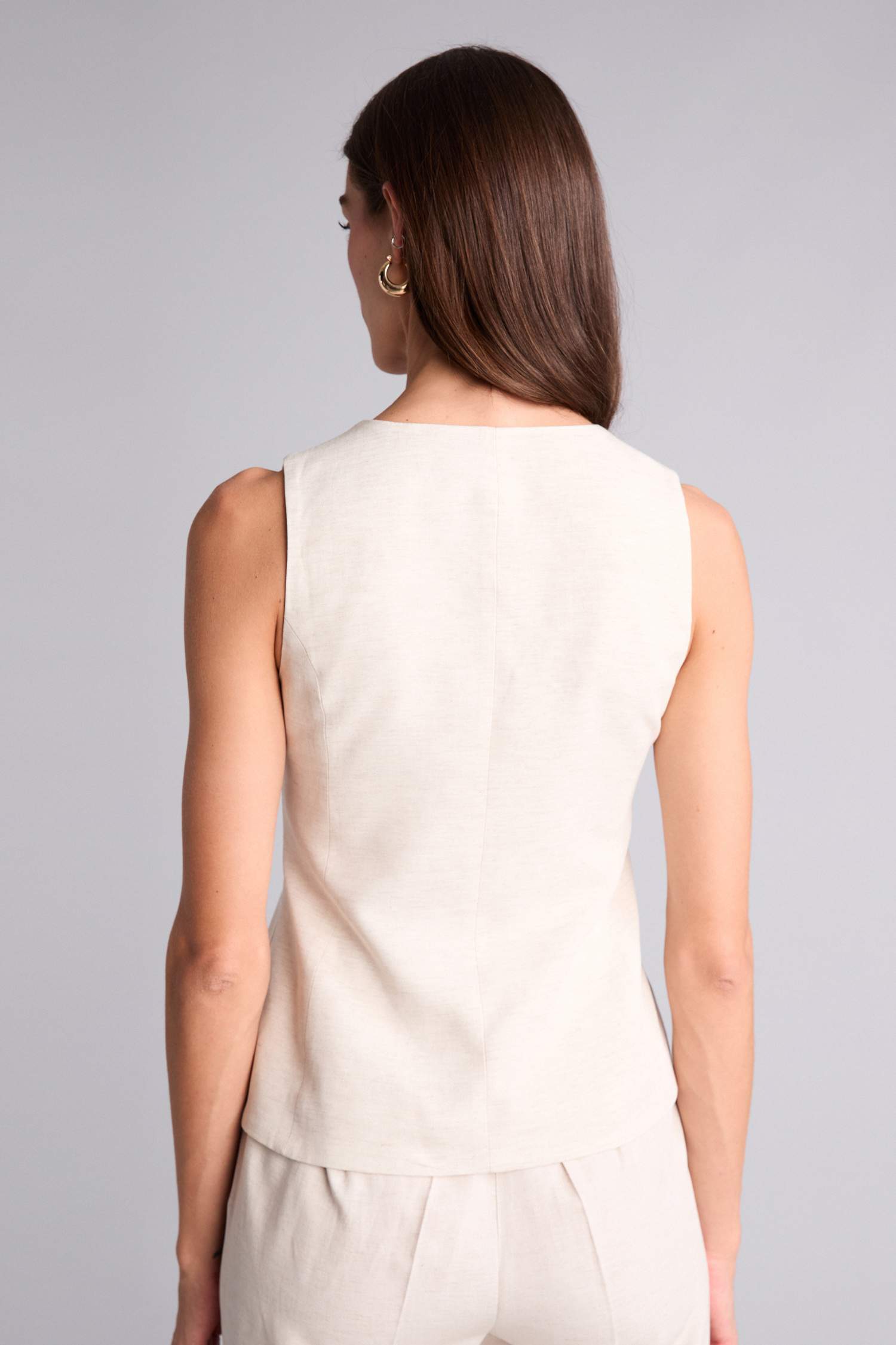 Fıtted Keten Karışımlı Yelek