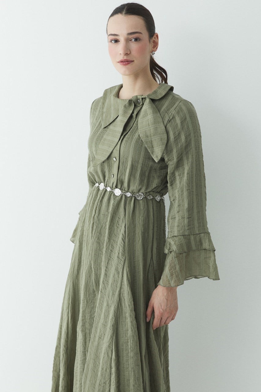 Fiyonk Detay Çizgili Astarlı Elbise – Haki