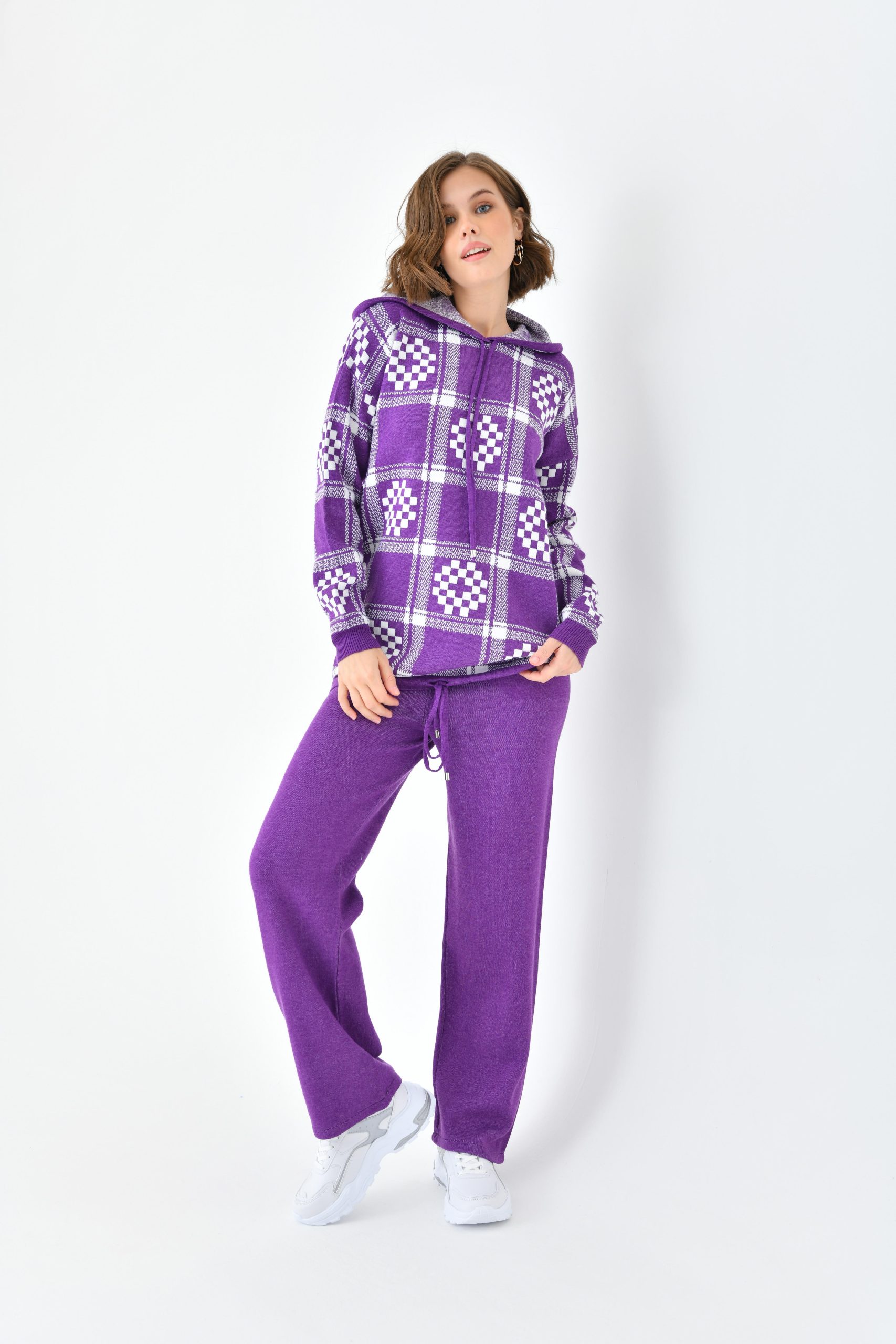 FTZ Kadın Mor Ekose Desenli İki Parçalı Takım 20604