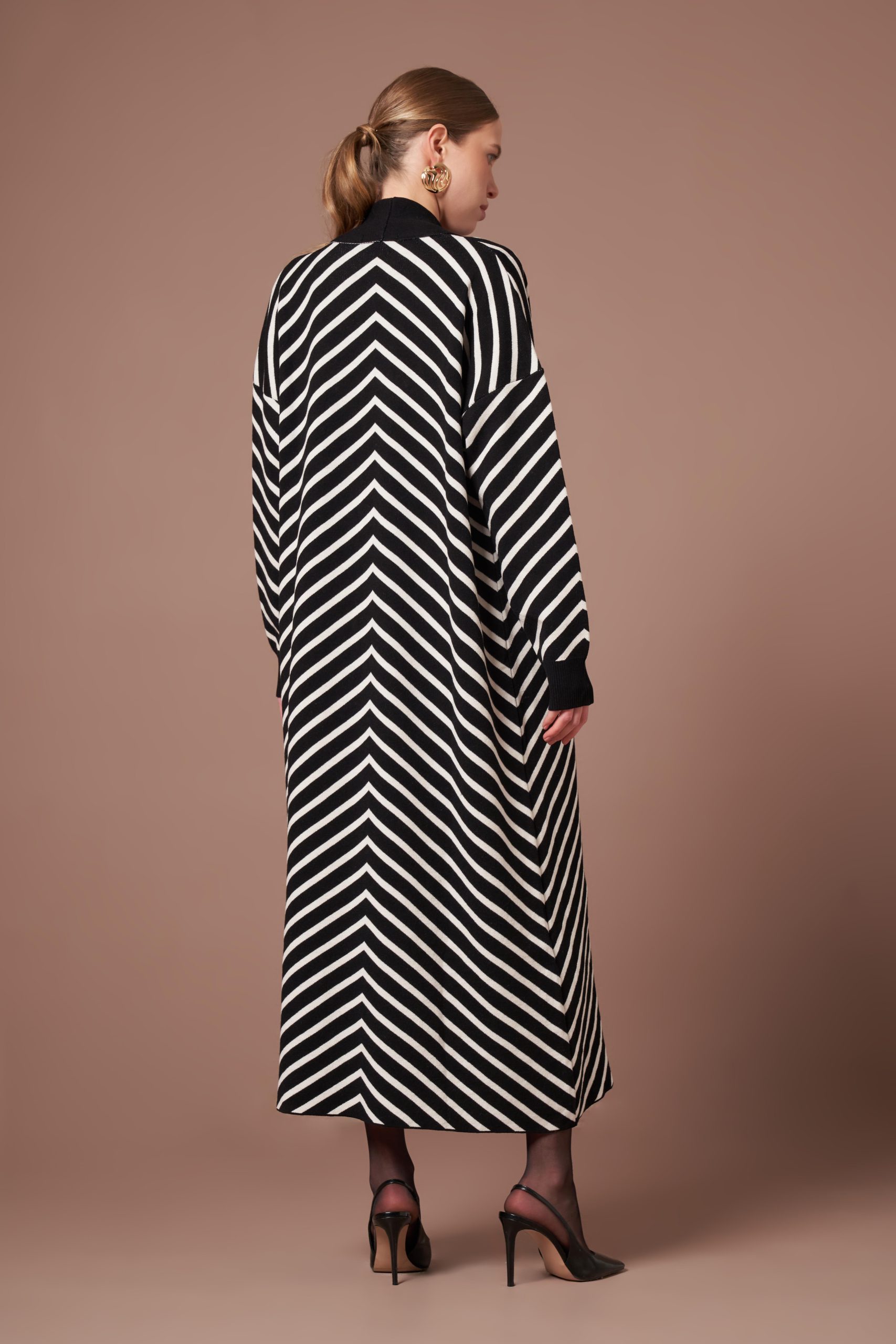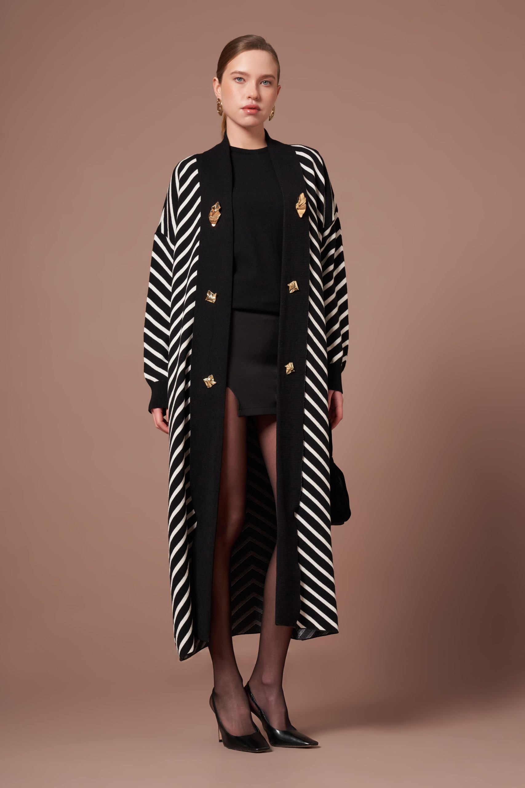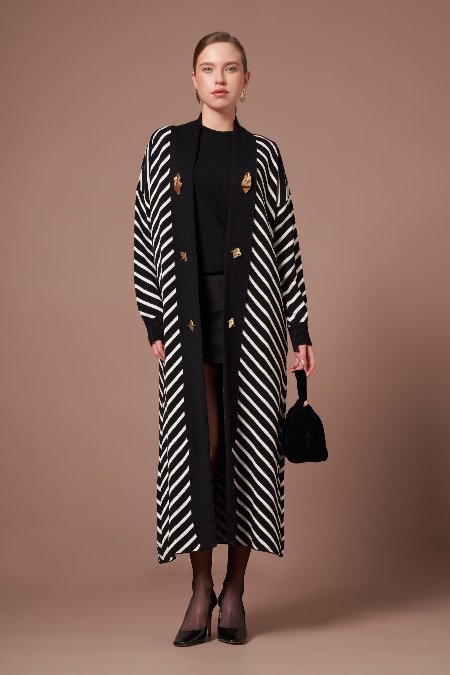 FTZ Women Kadın Düğme Detay Çizgili Hırka Siyah 25149