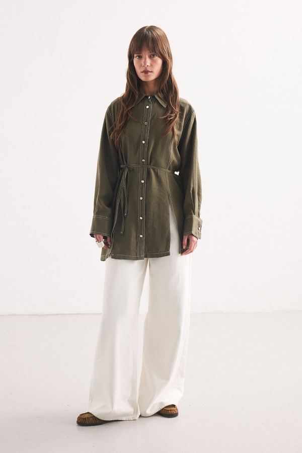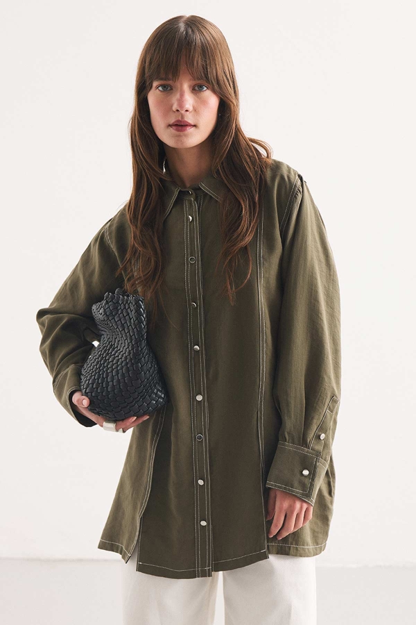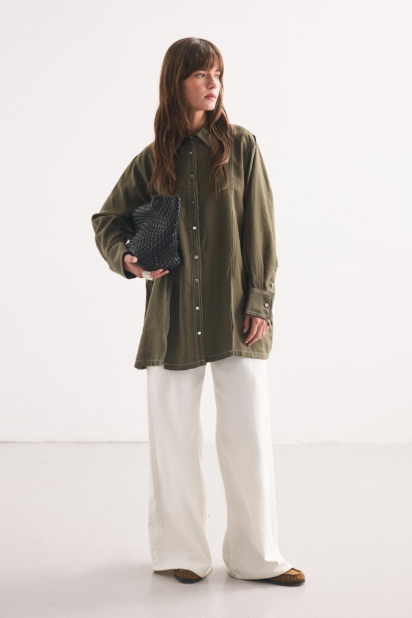 GARDENYA ÇİFT DİKİŞ DETAYLI HAKİ GÖMLEK ÖZELLİKLERİ