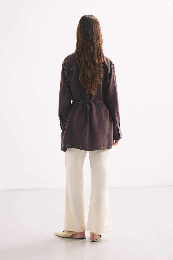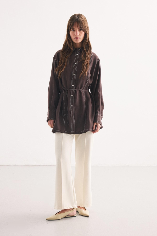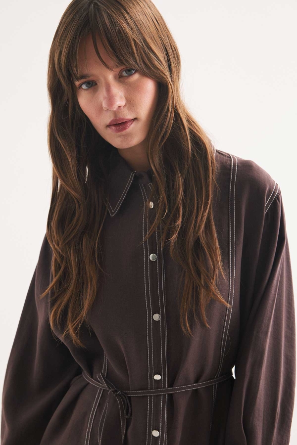 GARDENYA ÇİFT DİKİŞ DETAYLI KAHVE GÖMLEK ÖZELLİKLERİ
