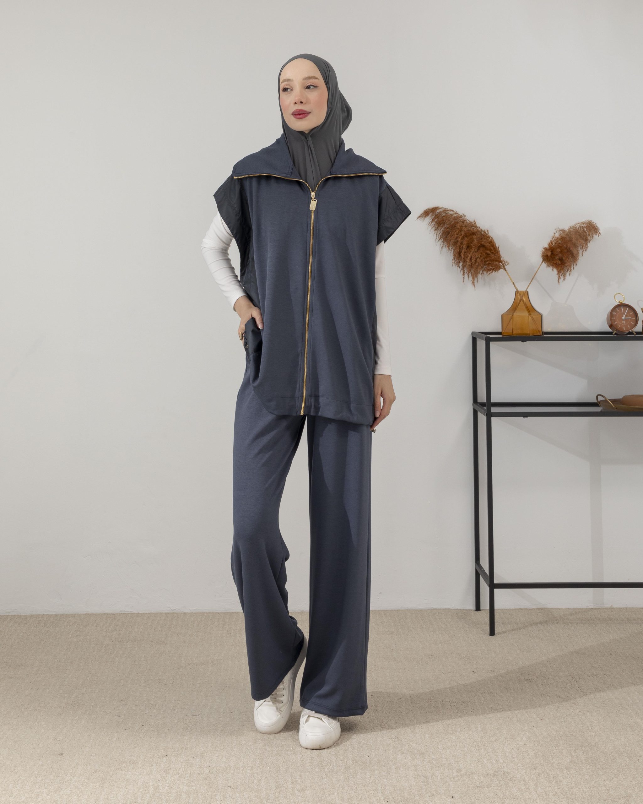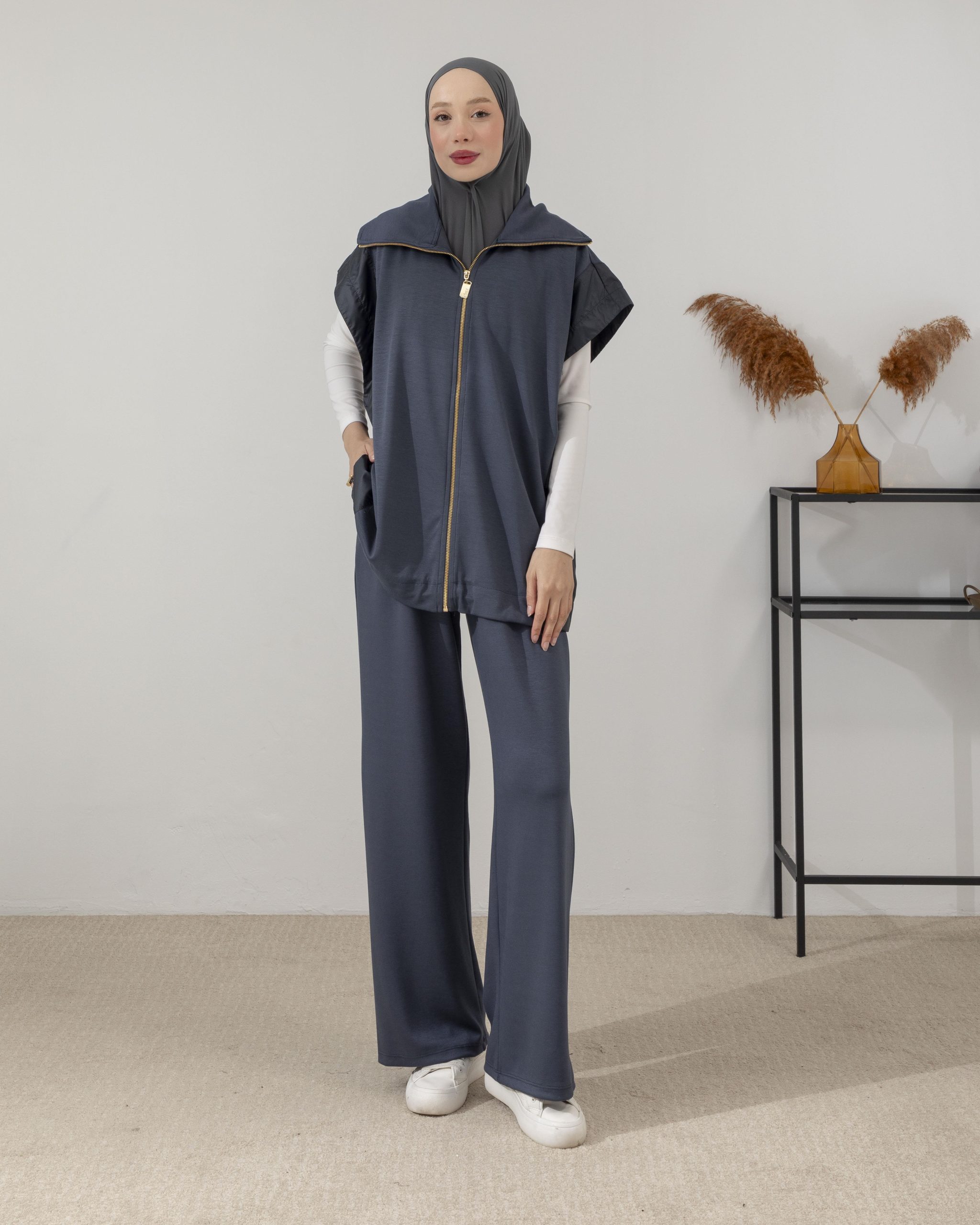 Tunik ve pantolonun uyumlu siluetiyle öne çıkan bu takım, aplike cep detaylarıyla sade tasarıma sofistike bir karakter kazandırır. Akıcı kumaşı gün boyu konfor sağlarken, modern çizgisi şehir stiline güçlü ama yalın bir dokunuş ekler.
